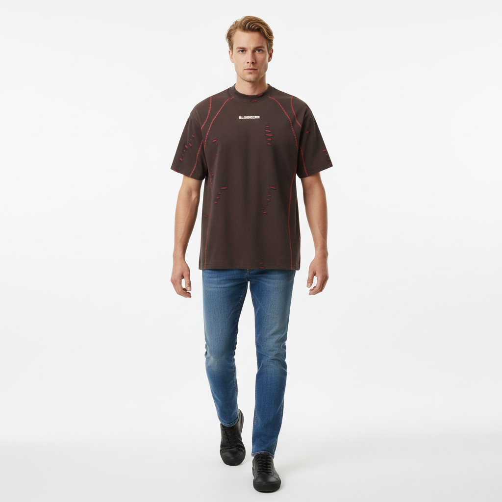 Abgenutztes Kurzarm-T-Shirt – Lockere Passform