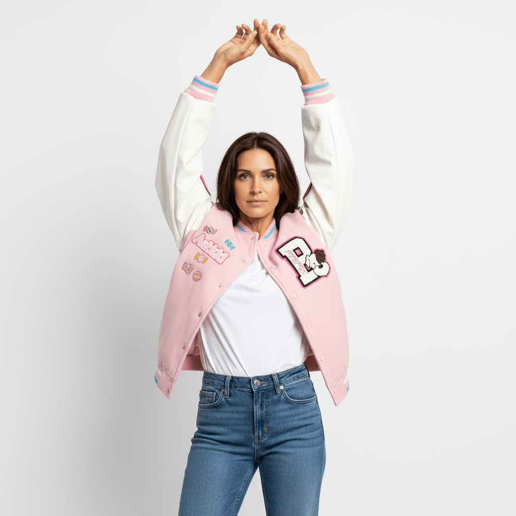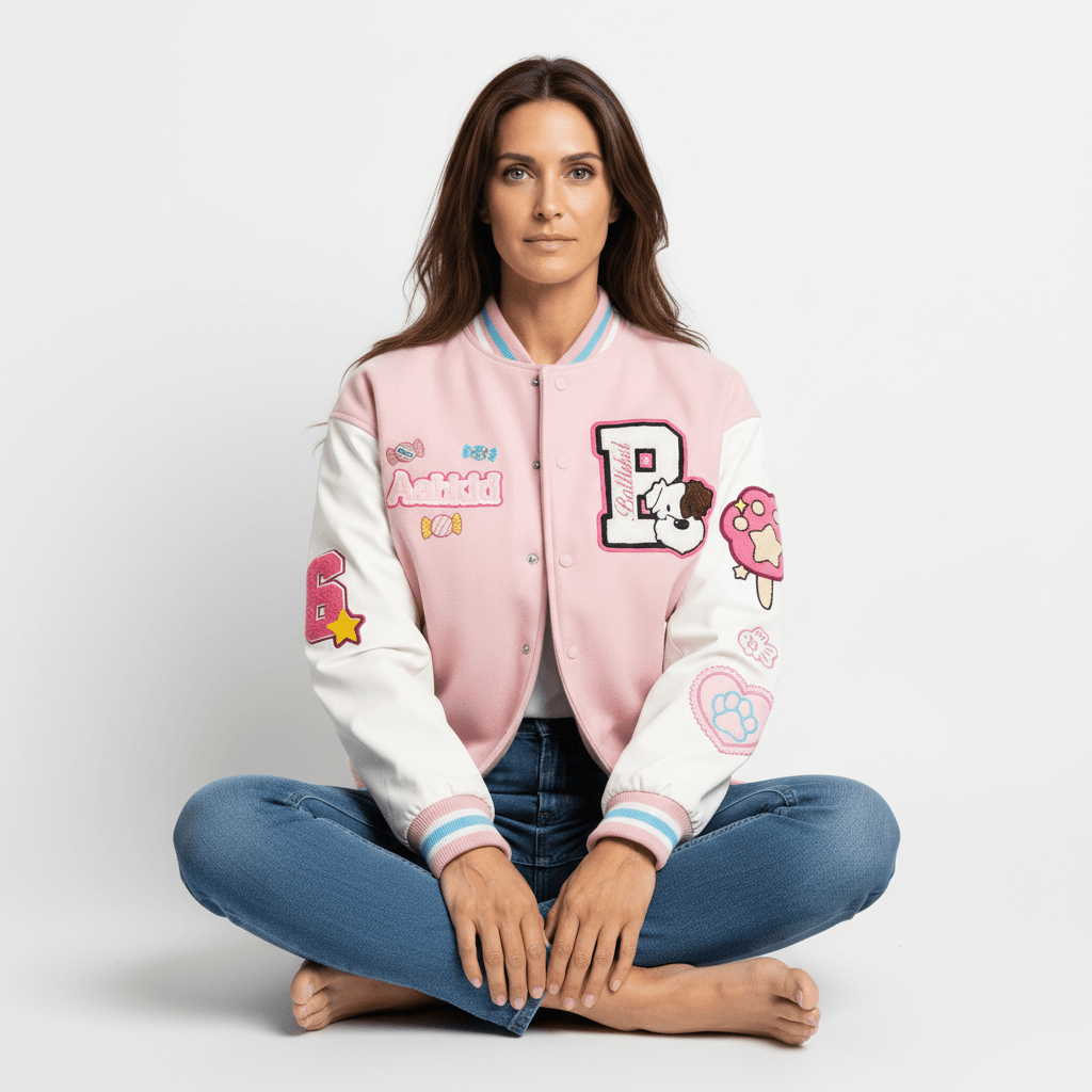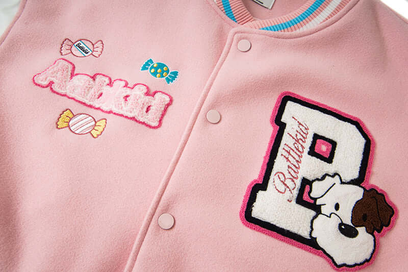 Diese Jacke mit farbblockierten Paneelen und verspielter Buchstabenstickerei kombiniert sportlichen Stil mit einem lustigen, jugendlichen Flair. Der Stehkragen, der einreihige Verschluss und die praktischen Taschen machen sie funktional und gleichzeitig stilvoll. Erhältlich in Braun, Marineblau und Pink, ist diese Jacke in regulärer Länge ideal für lässige Ausflüge, die Schule oder von Streetwear inspirierte Looks.