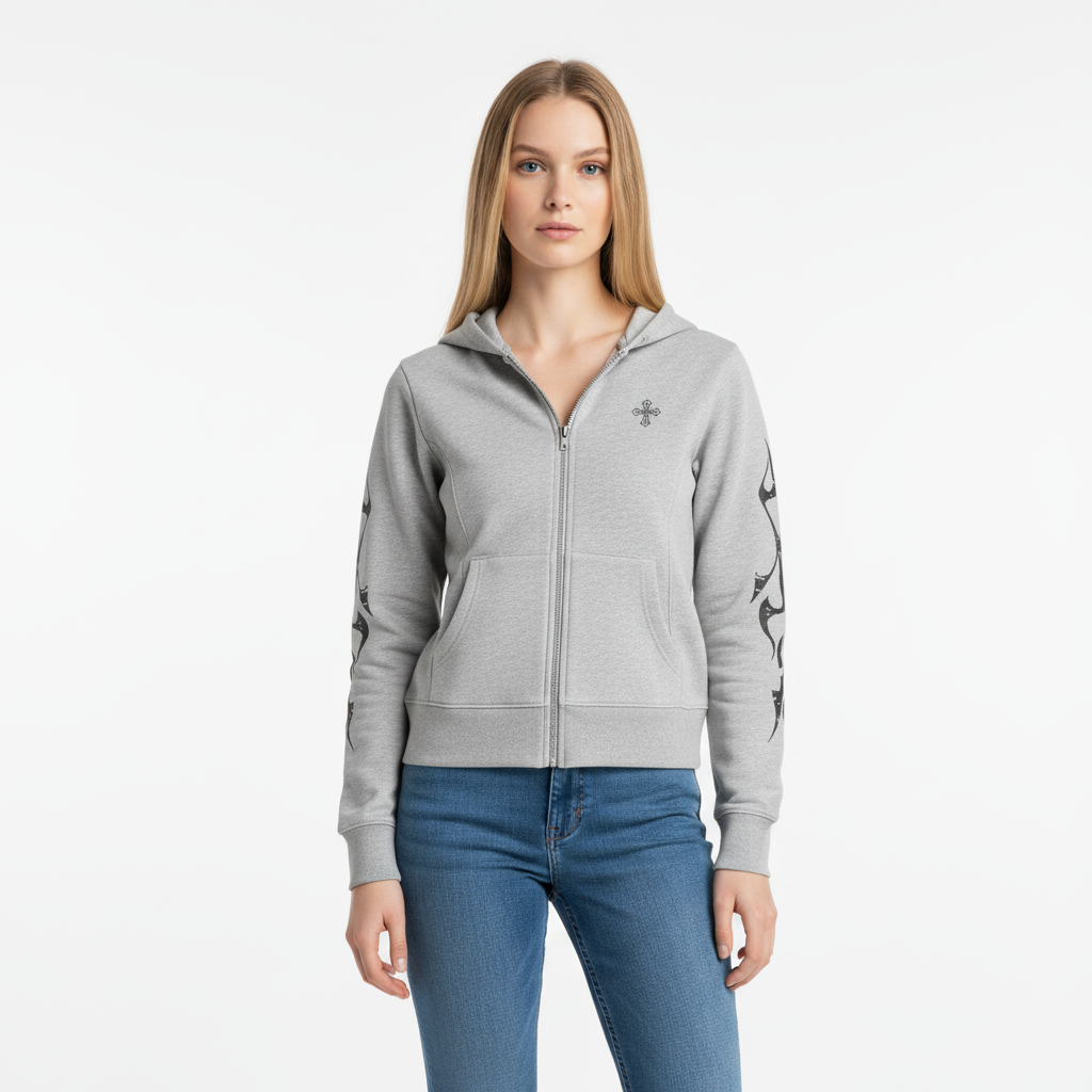 Vintage Gothic Reißverschluss-Hoodie – Schmale Passform