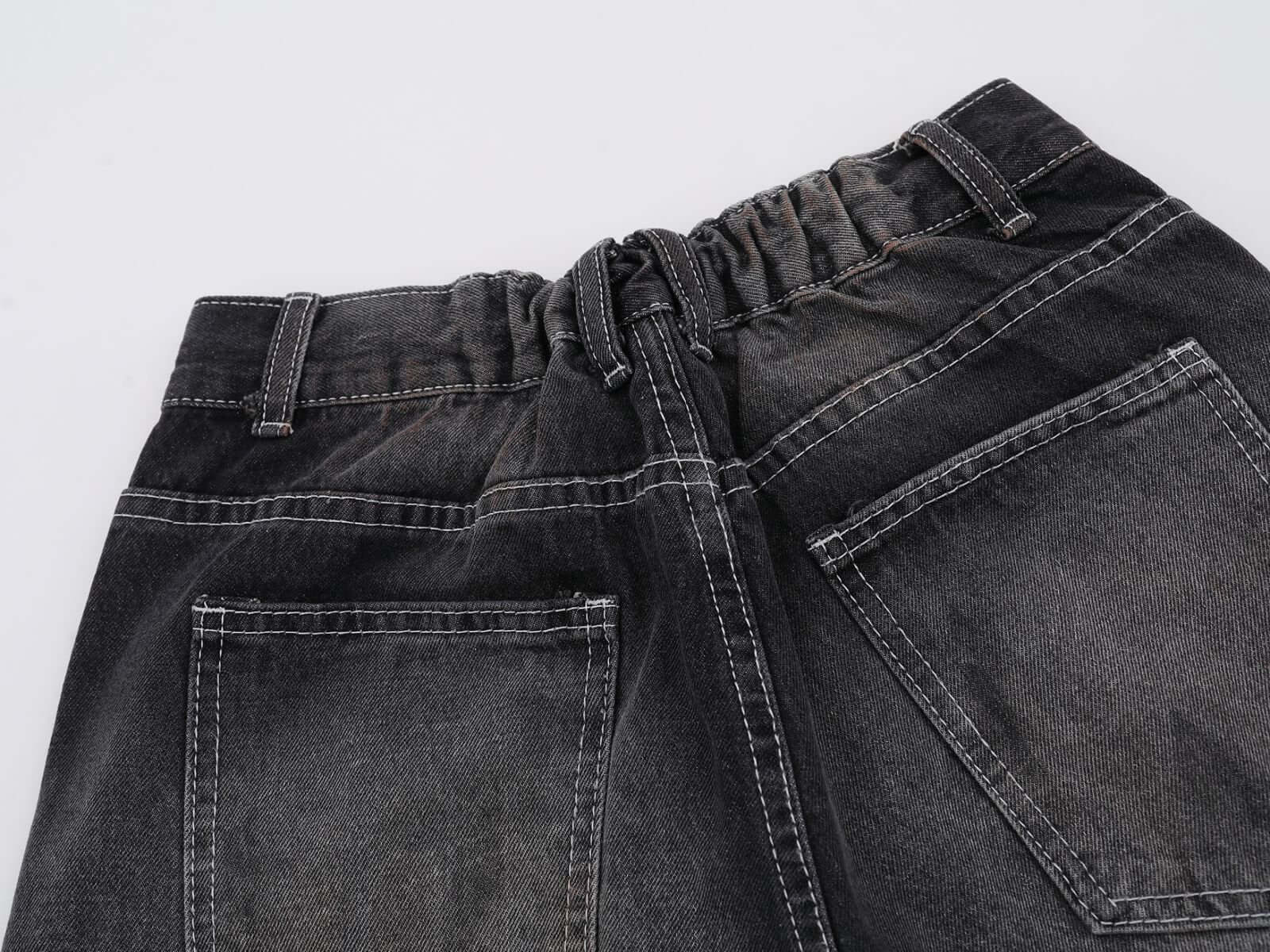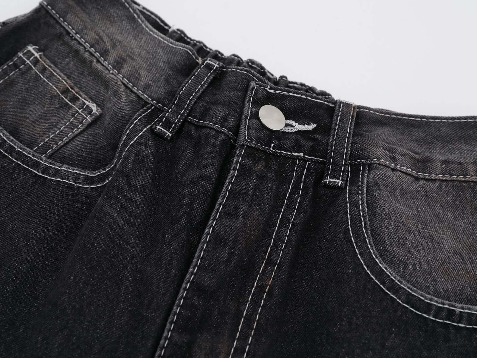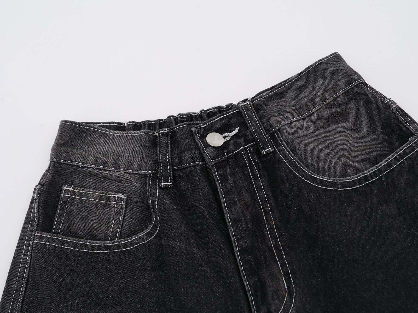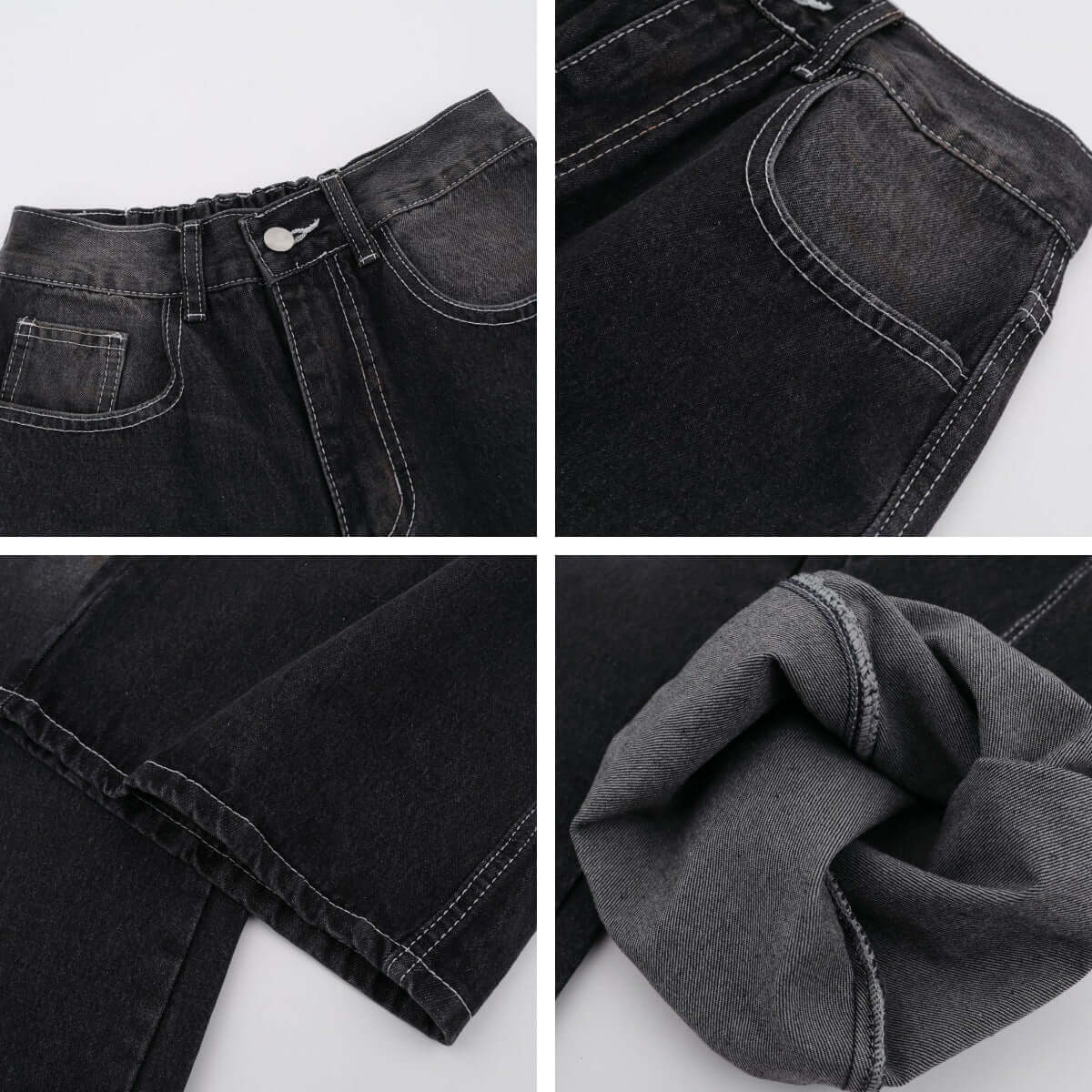 Gewaschene Gerade Schwarze Jeans – Lockere Passform