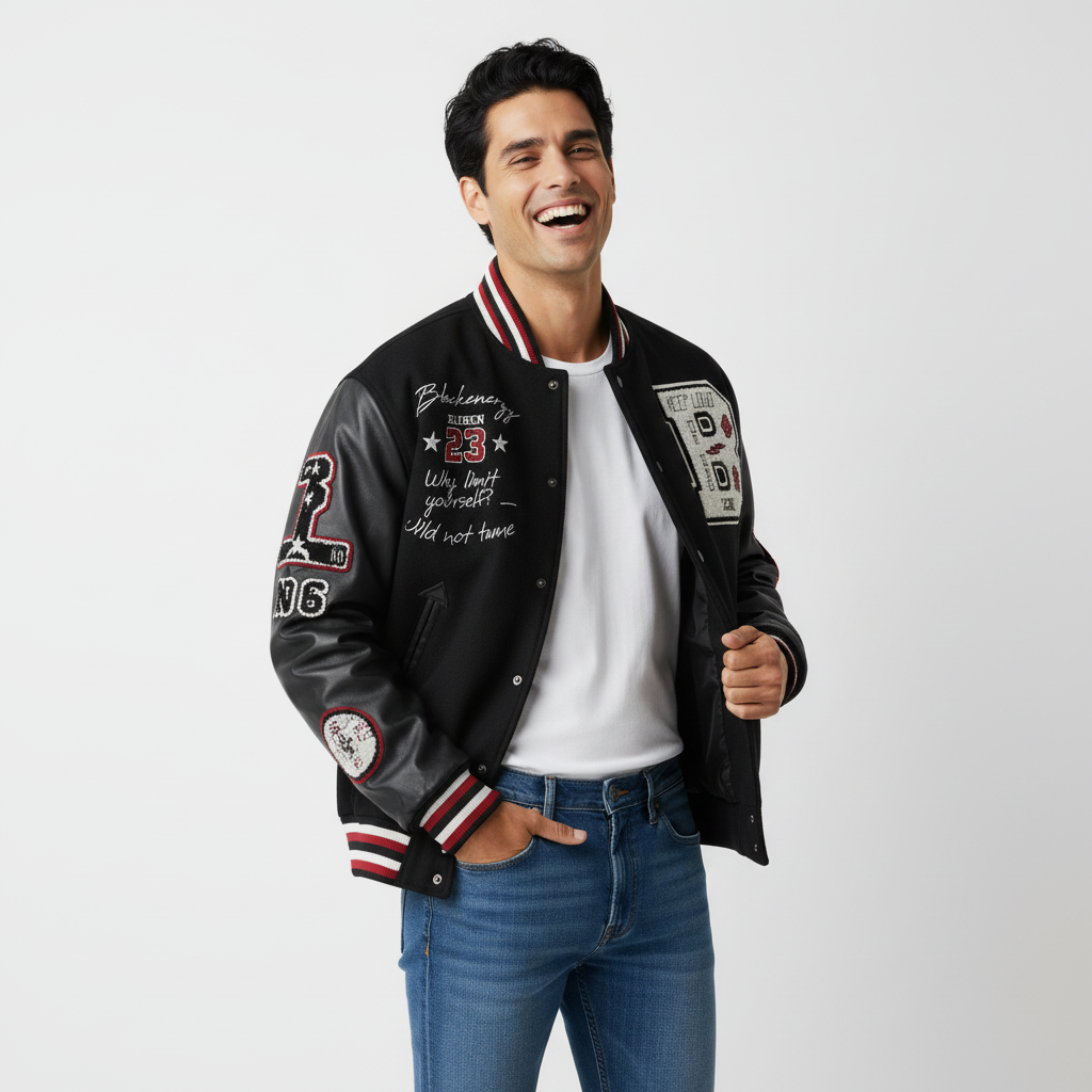 Schwere bestickte Baseballjacke – Dicke Passform