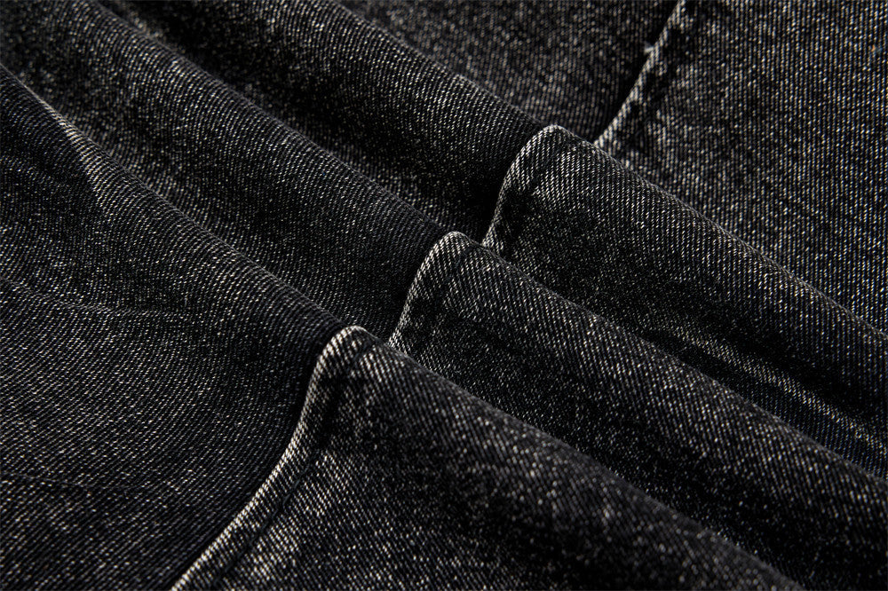 - Schwere, abgenutzte Patchwork-Cargo-Jeans mit schmalem Schnitt und Gürtelschlaufen für mutige, bequeme und stilvolle Straßenmode.