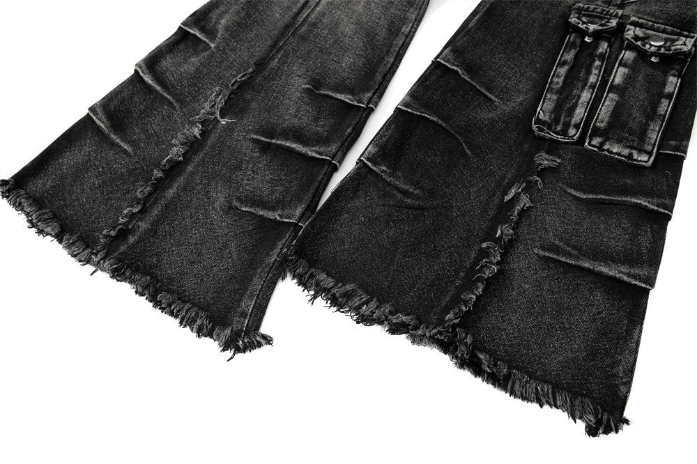 Die Grozavu Trendy Belted Flared Cargo Jeans sind für Männer entworfen, die mutige Street-Fashion mit einem einzigartigen, dekonstruierenden Touch wünschen....