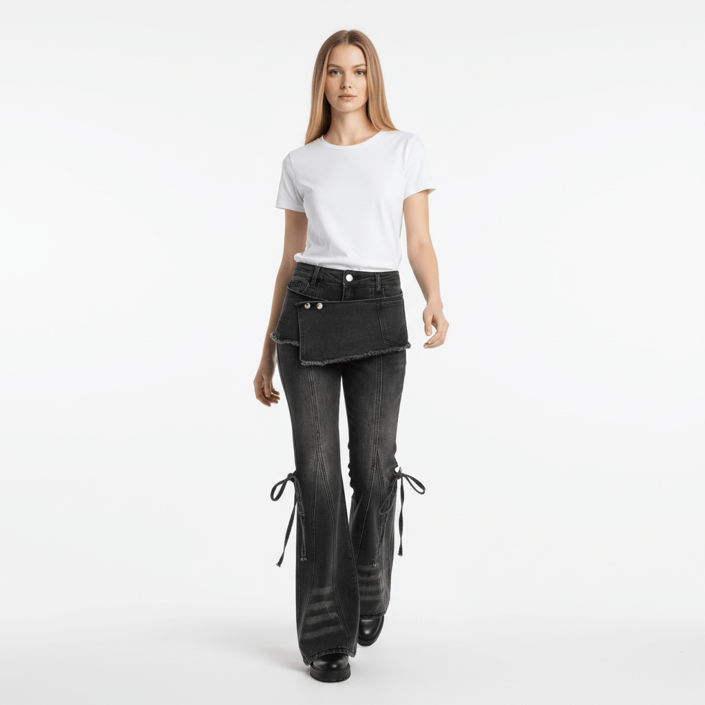 Die Grozavu Urban Edgy Flared Casual Pants sind für Frauen entworfen, die mutige Streetwear mit einer sexy, jugendlichen Attitüde lieben. Mit einem denim-inspirierten dekorativen Design, schmeichelhaftem, ausgestelltem Bein und bequemem, mittelhohem Bund schaffen diese Hosen eine schlanke Silhouette mit modernem Street-Fashion-Charme.