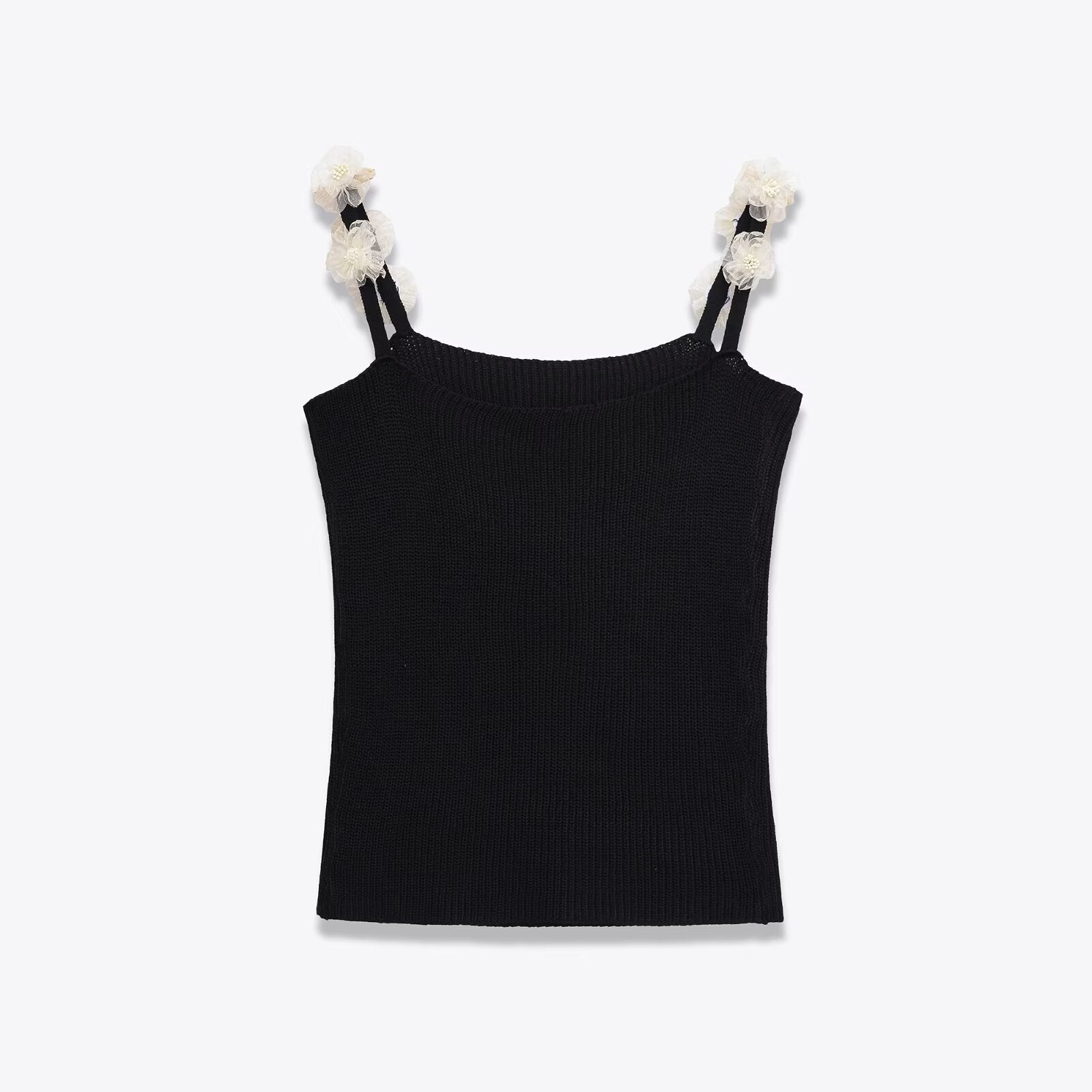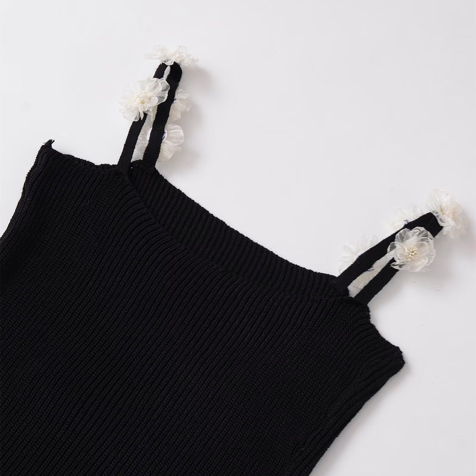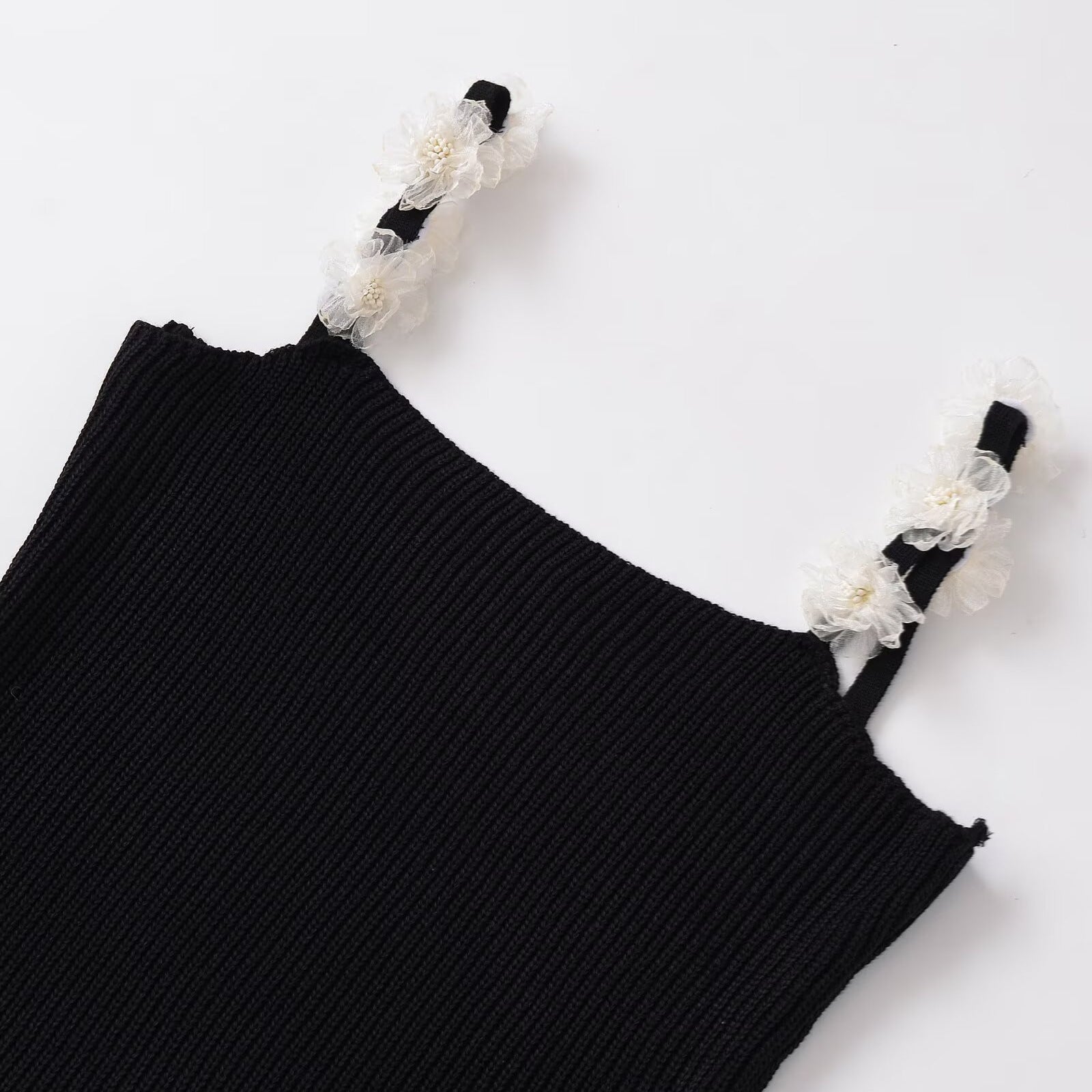 Heißes Mädchen Blumen Stricktop – Ärmelloses Rundhals-Strickkleid