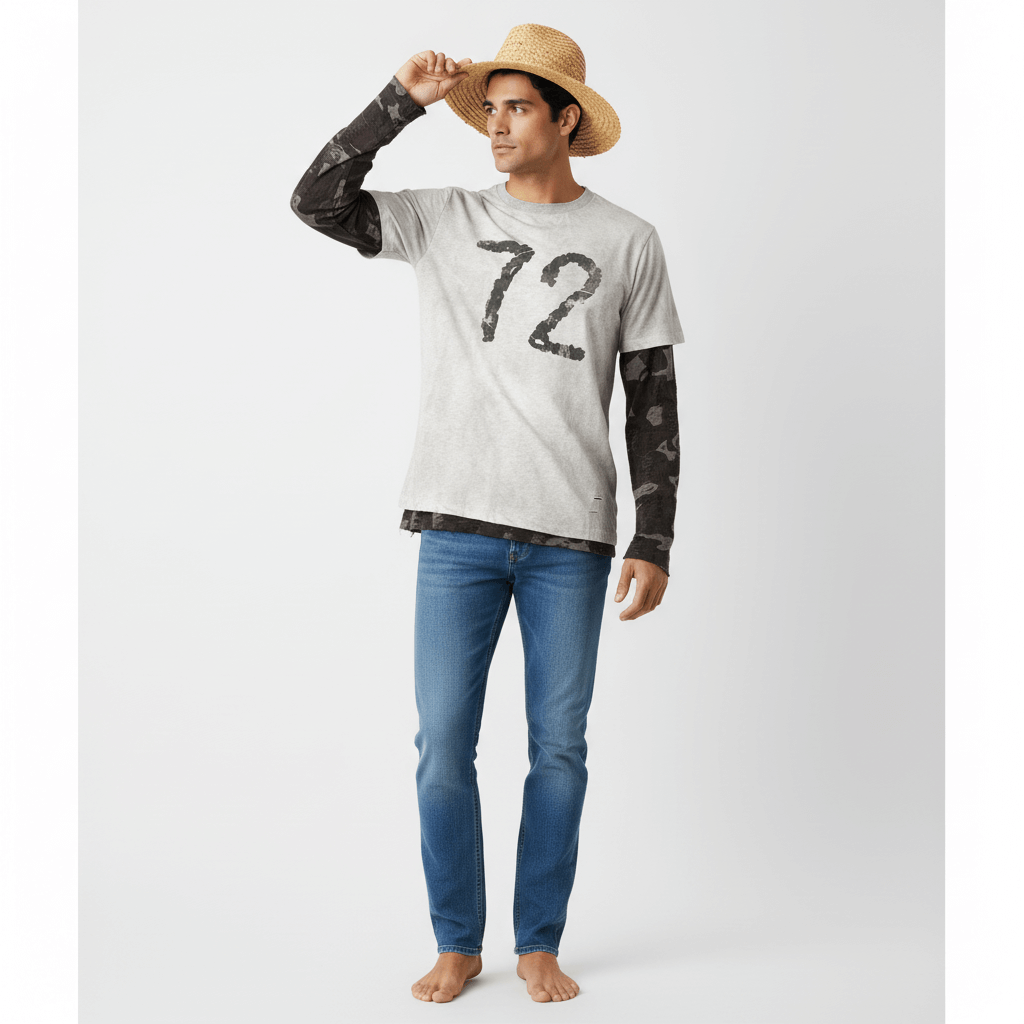Aktualisieren Sie Ihre Streetwear-Rotation mit diesem Vintage-Stil Faux-Zweiteiler Langarm-T-Shirt, das für einen mutigen Lagenlook ohne das Volumen entworfen wurde. Mit...