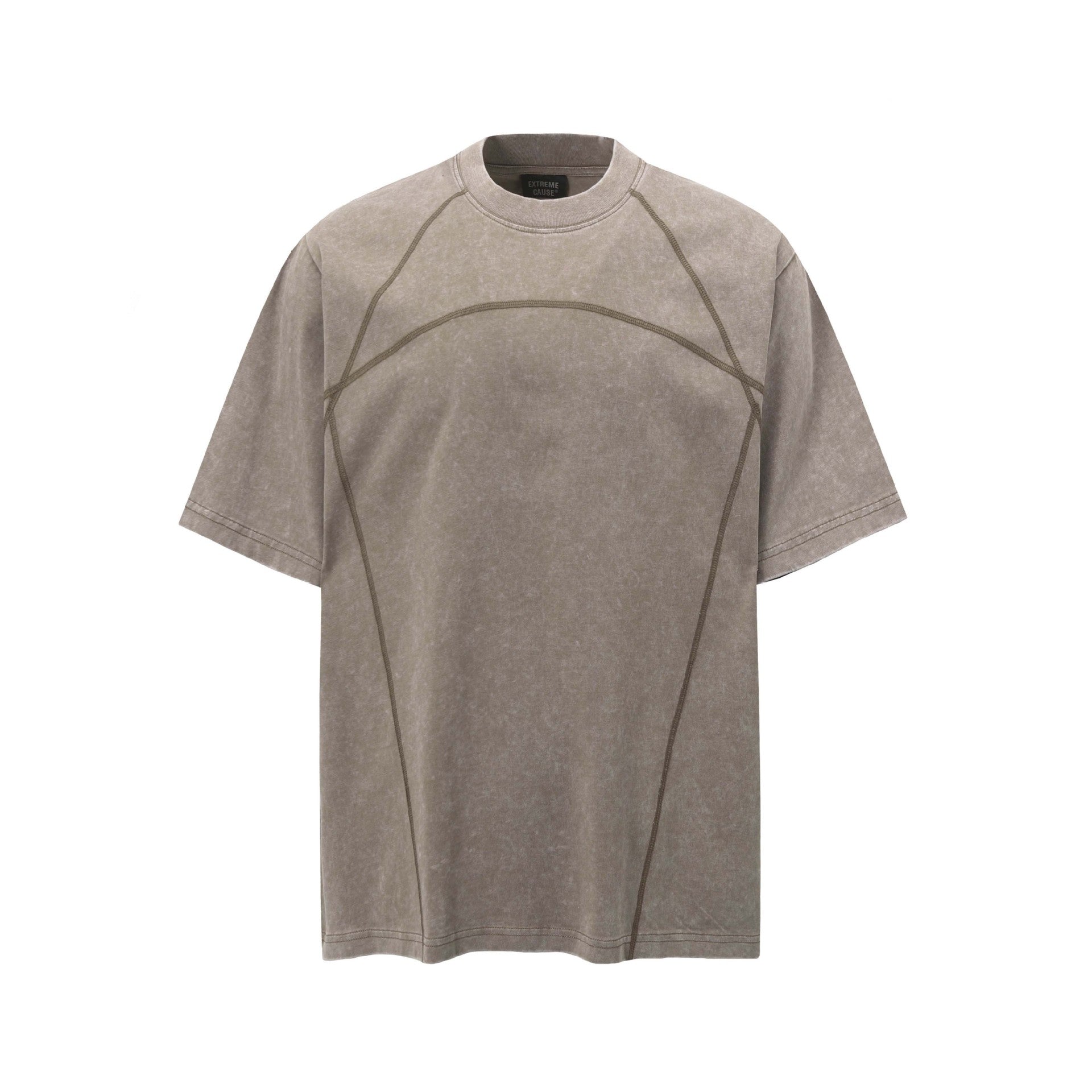 Retro Washed Distressed Topstitching Letter Print Short Sleeve T-Shirt Unisex Loose Casual Top