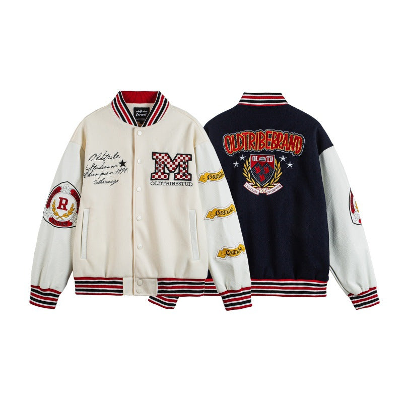 Brand Letter Emblem Leather Patchwork Baseball Jacket Men