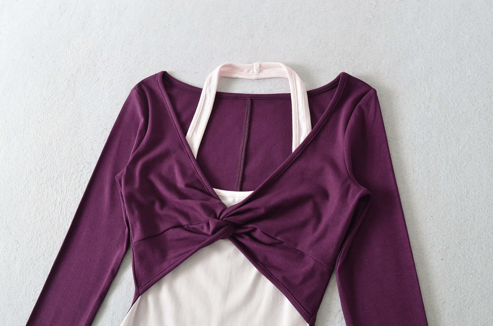 Der runde Ausschnitt verfügt über ein dezentes Hanging Neck-Detail, das visuelles Interesse hinzufügt und gleichzeitig den Look raffiniert hält. Eine schlanke Silhouette betont deine natürlichen Linien, und die langen Ärmel machen es einfach, über die Jahreszeiten hinweg zu stylen. Das einfarbige Design hält es vielseitig für lässige Outfits oder schickere Looks.
