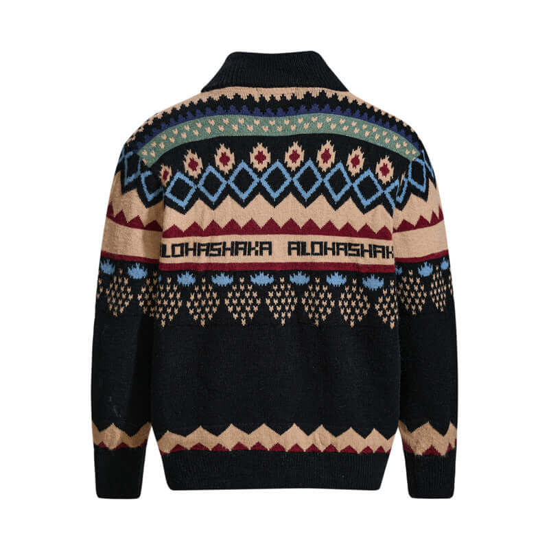 • Warmer, lockerer Farbblock-Jacquard-Strickcardigan mit Stehkragen für stilvolle und bequeme Unisex-Straßenmode.