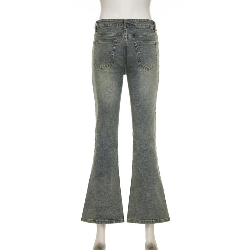 Retro Gewaschene Würzige Mädchen Slim Mikro Ausgestellte Hose