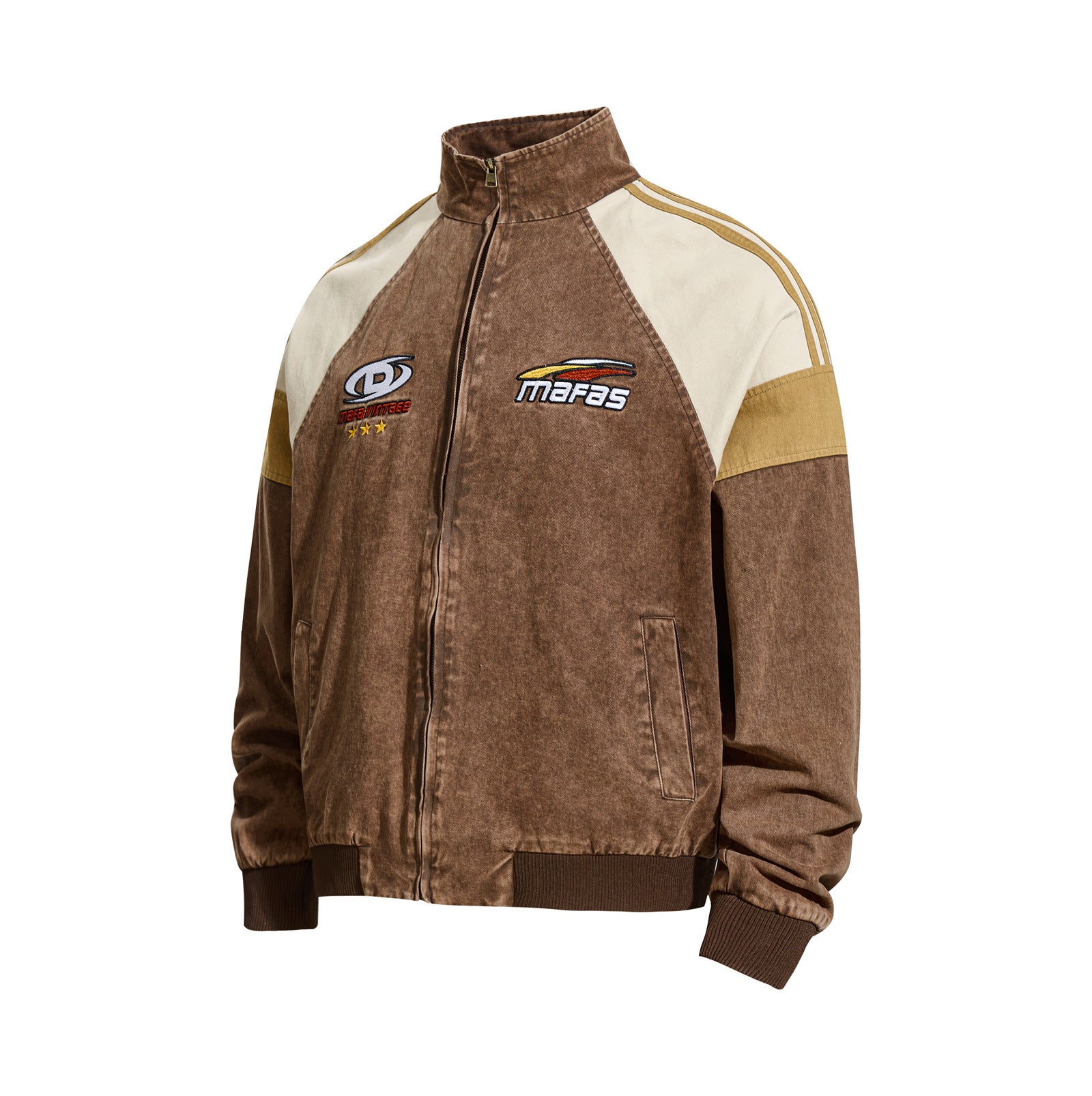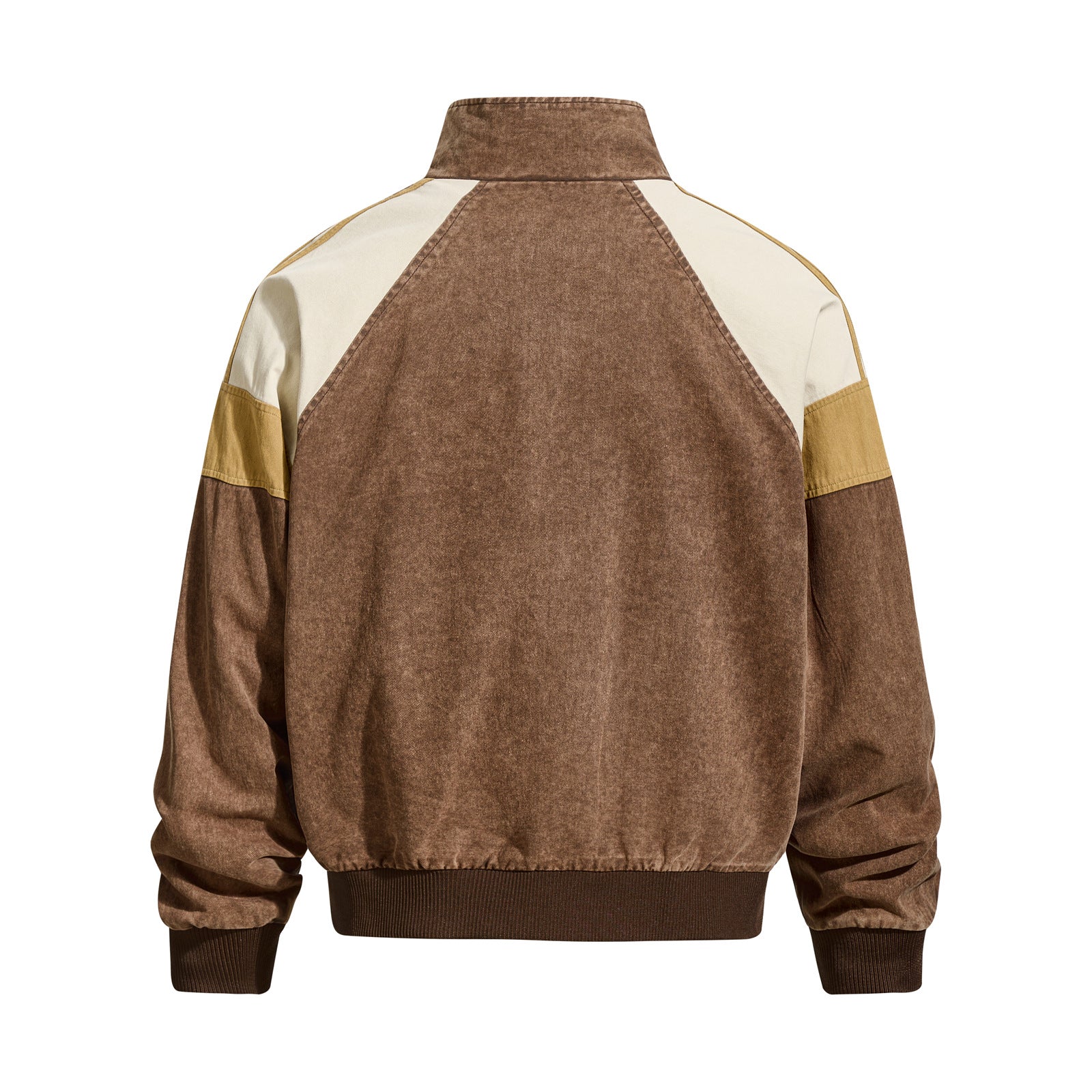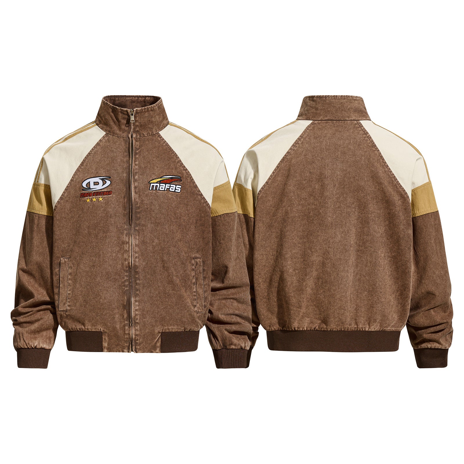 Color: BrownStyle: American RetroPattern Type: LetterSleeve Length: Long SleeveNeckline: Stand CollarFabric: CottonClosure Type: ZipperFit Type: Loose FitOccasion: CasualGender: MaleSize: M,...