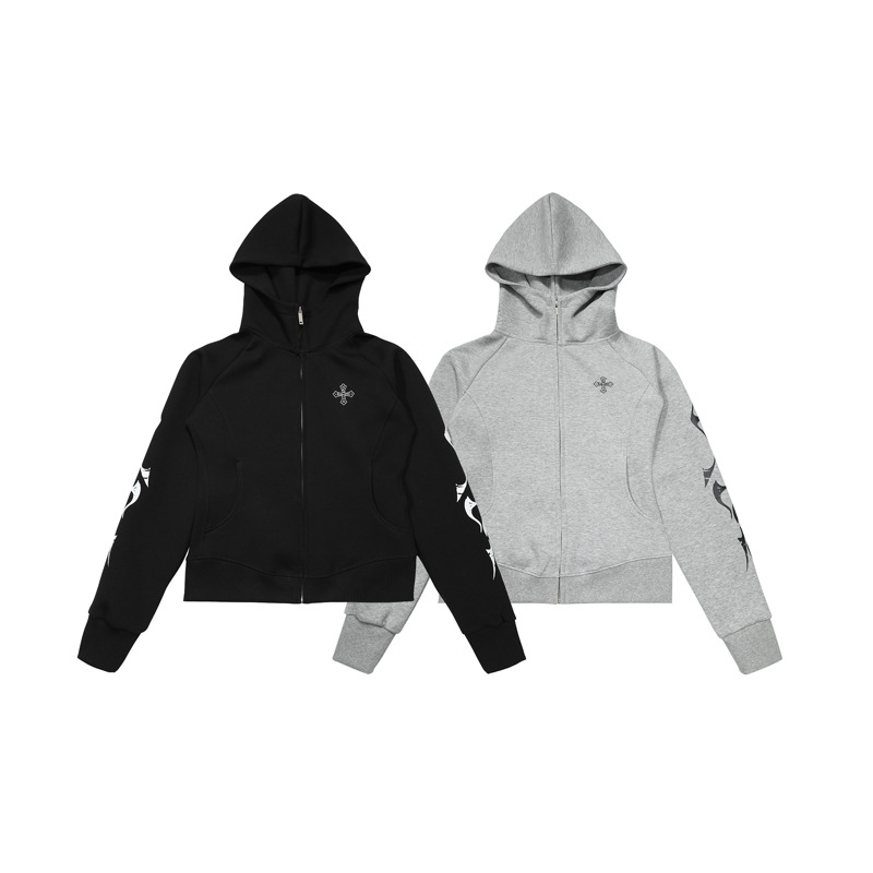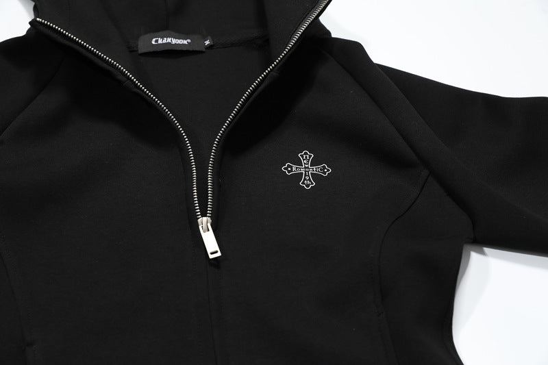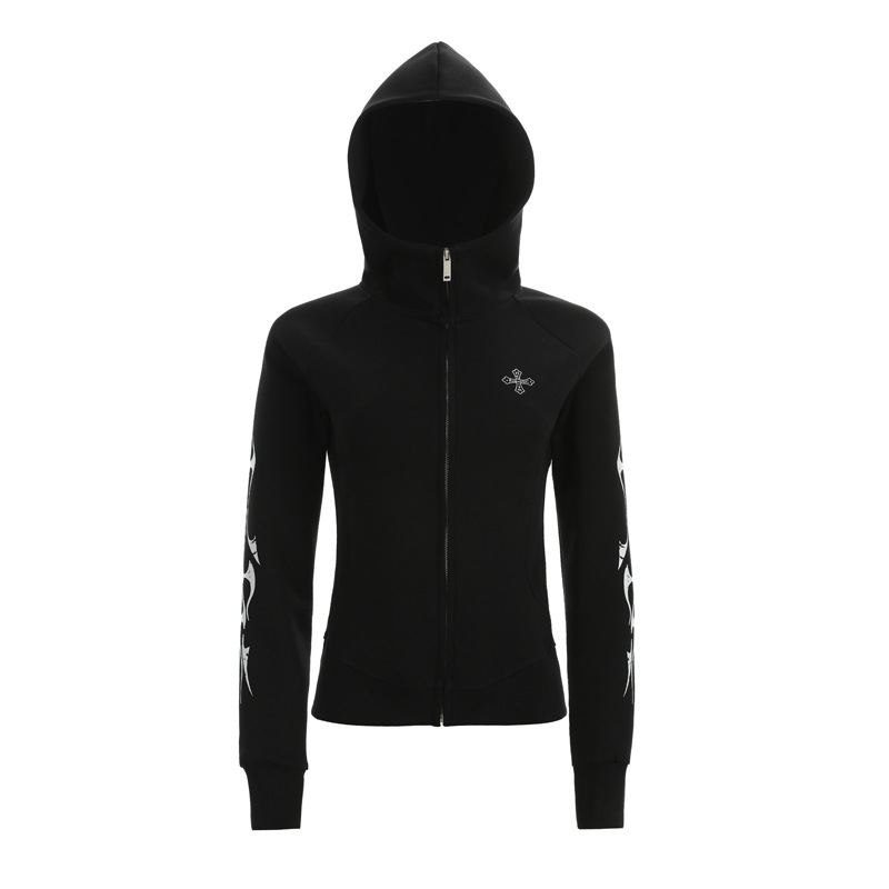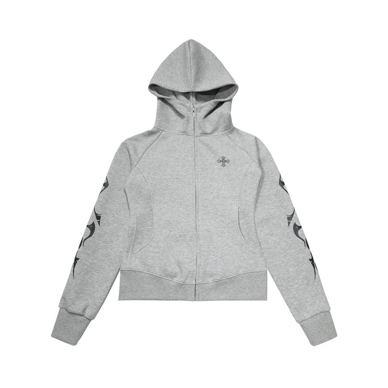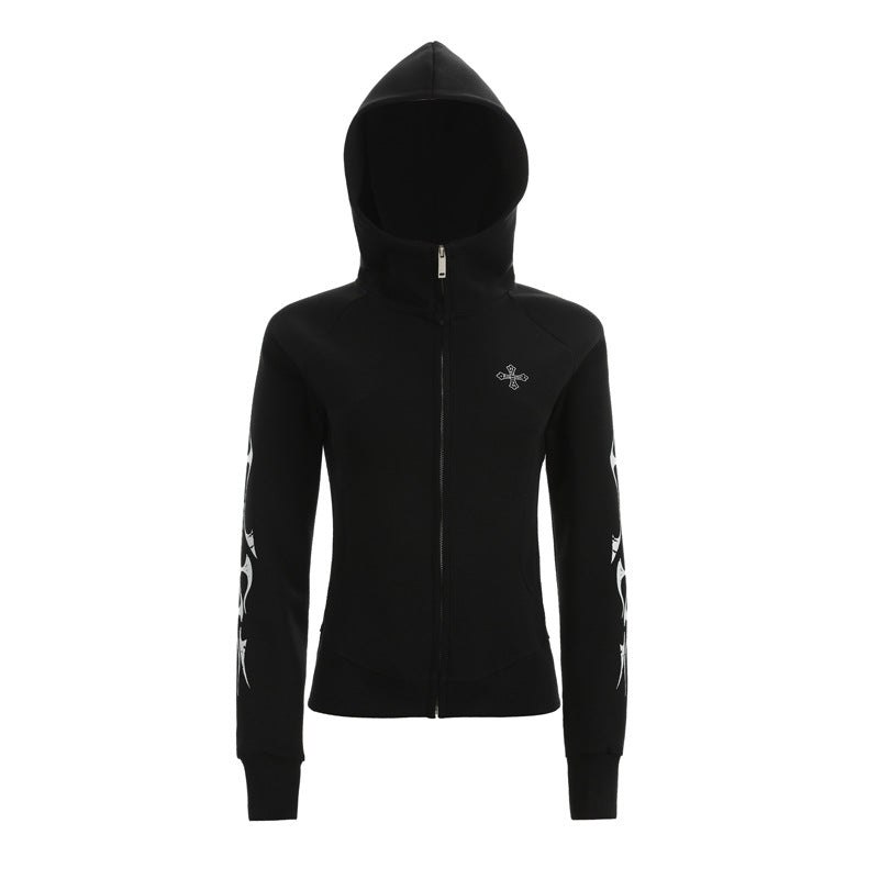 Vintage Gothic Zip-Up Hoodie – Slim Fit Streetwear