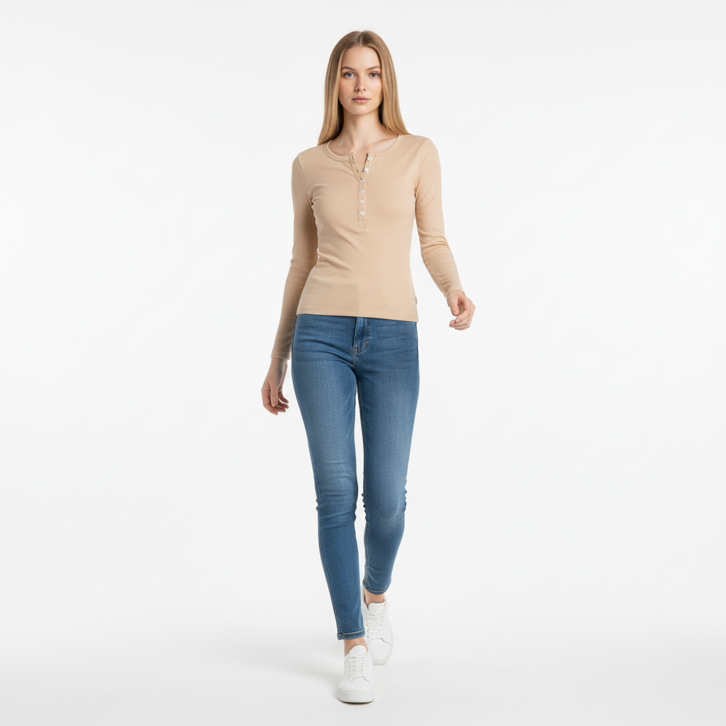 V-Ausschnitt Langarmshirt - Schmale Passform