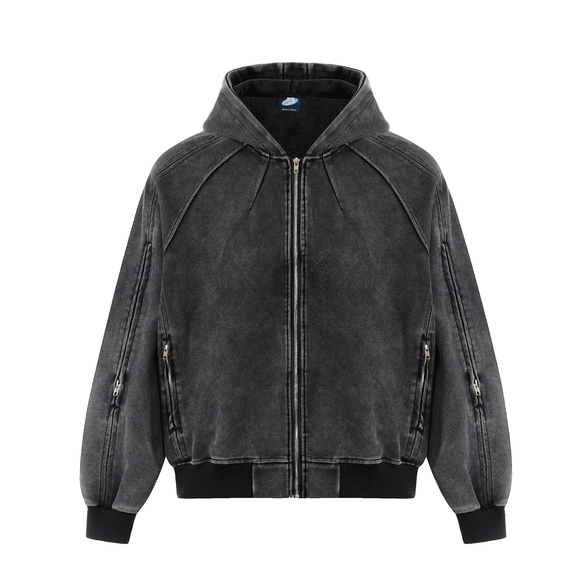 Gewaschene Hoodie-Jacke – Lockere Passform Reißverschluss Sweatshirt
