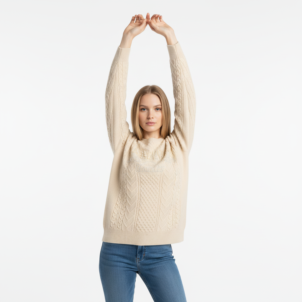 - Soft loose-fit beaded letter knit sweater for comfortable, stylish, and versatile streetwear in cool seasons.