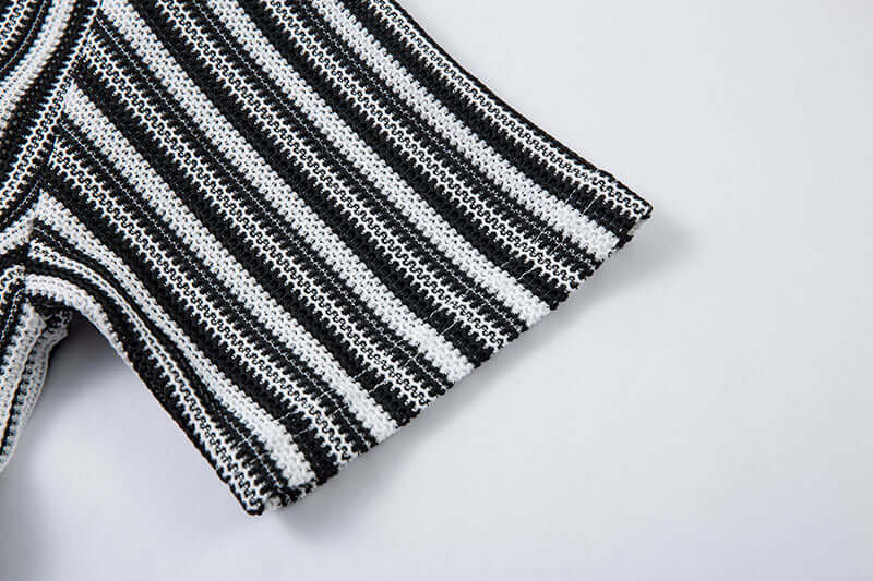 • Retro Stripe Short Sleeve Shirt – Loose Fit in black and white stripe pattern with flip collar, perfect for summer wear.
