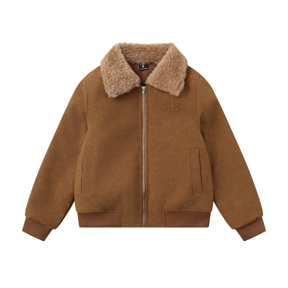 Faux Suede Jacket for Women Winter Loose with Fur Collar Turn-Down Collar Coat