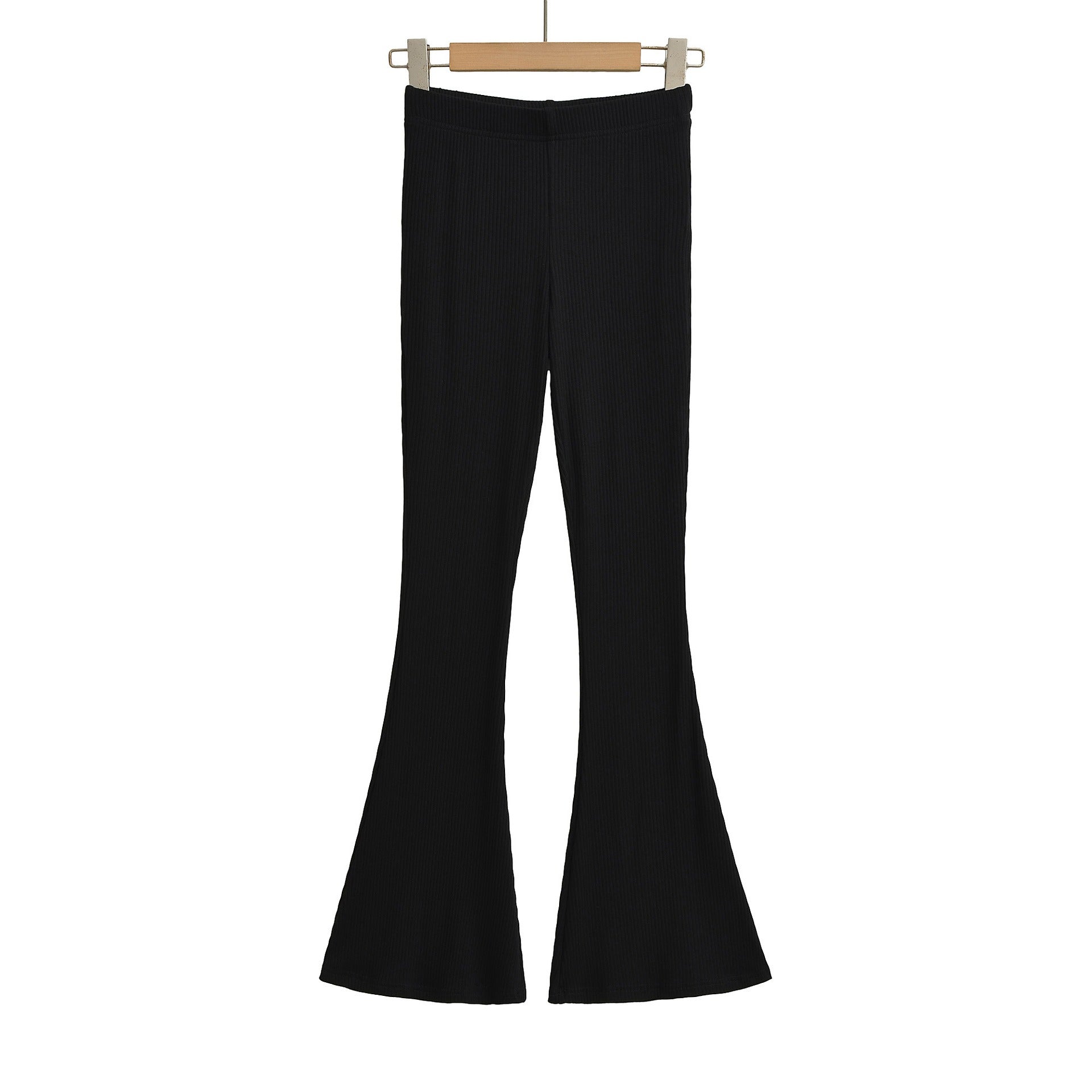 Solid Color Design, Low Waist Fit, Slim Fit Silhouette, Slightly Flared Hem, Long Length Cut, Soft Cotton + Spandex Stretch Fabric, Casual Everyday Pants, Easy Matching Staple
