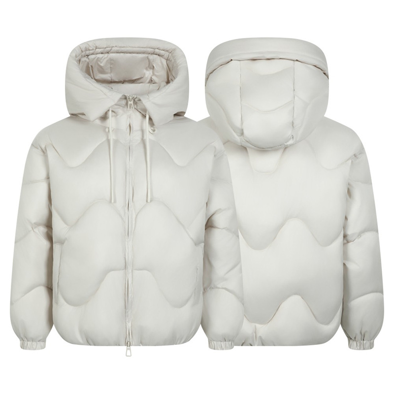 The Grozavu Wave Design Puffer Coat delivers bold street-fashion style with reliable winter warmth. Designed with a distinctive wave pattern and spliced detailing, this unisex hooded puffer creates a modern, eye-catching silhouette in Black and Beige White.