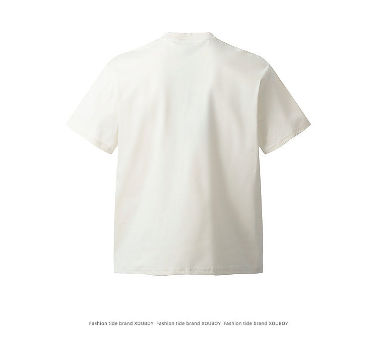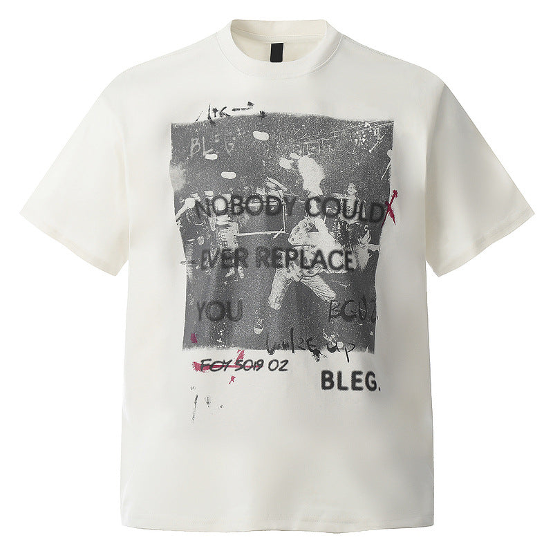 Breathable high-colorfast cotton blend letter print T-shirt with clean loose fit and drop shoulders for stylish and comfortable summer leisure wear.
