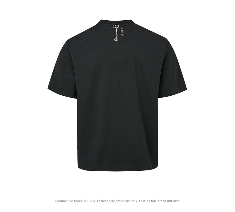 Breathable loose-fit cotton blend letter print T-shirt with drop-shoulder sleeves, wrinkle-free finish, and high color fastness for smart casual summer wear.