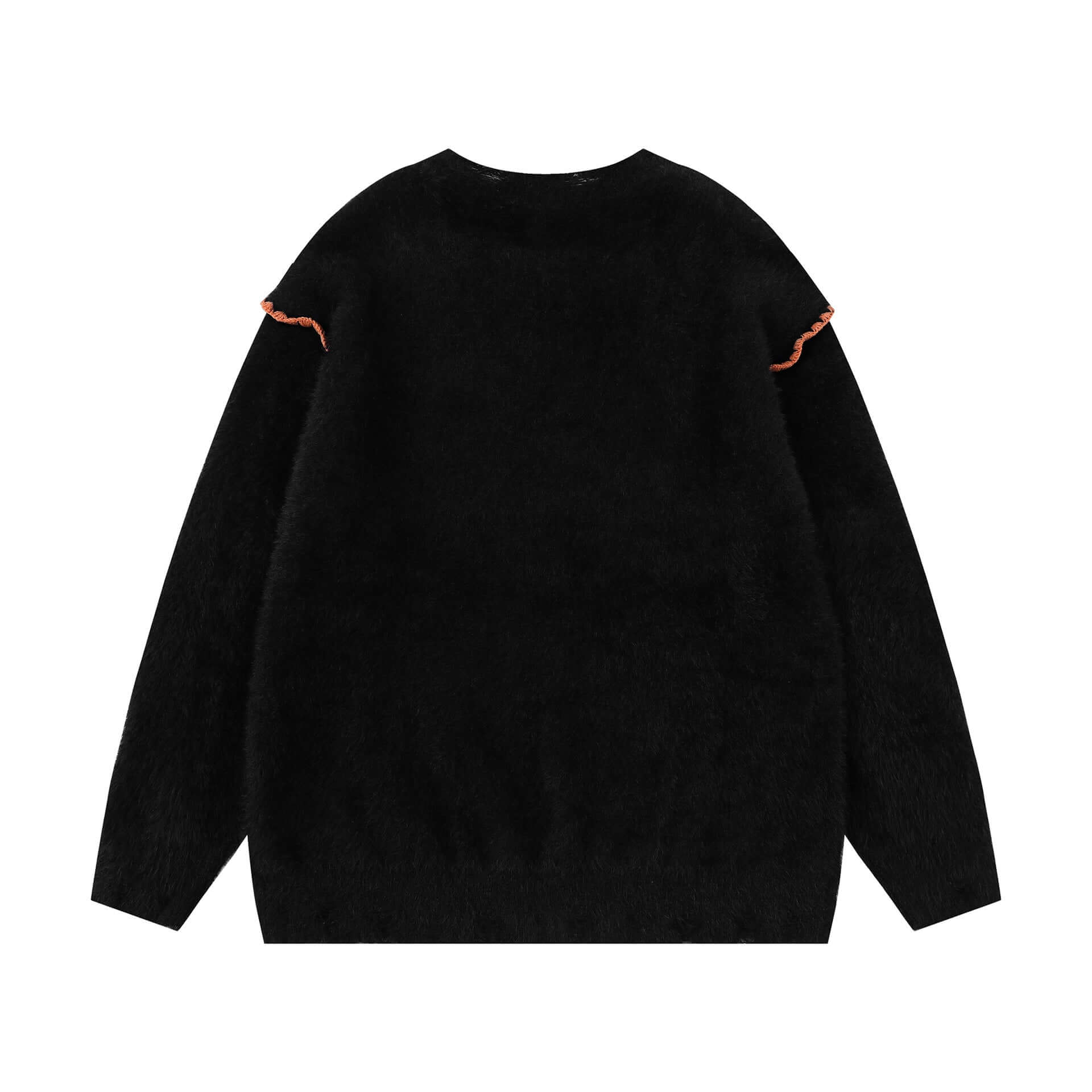 - Warm loose-fit nylon knit sweater with hand-stitched letter applique for bold, comfortable, and stylish daily streetwear.