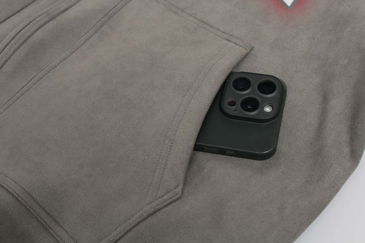 Sudadera con cremallera de impresión de ante sintético – Corte holgado