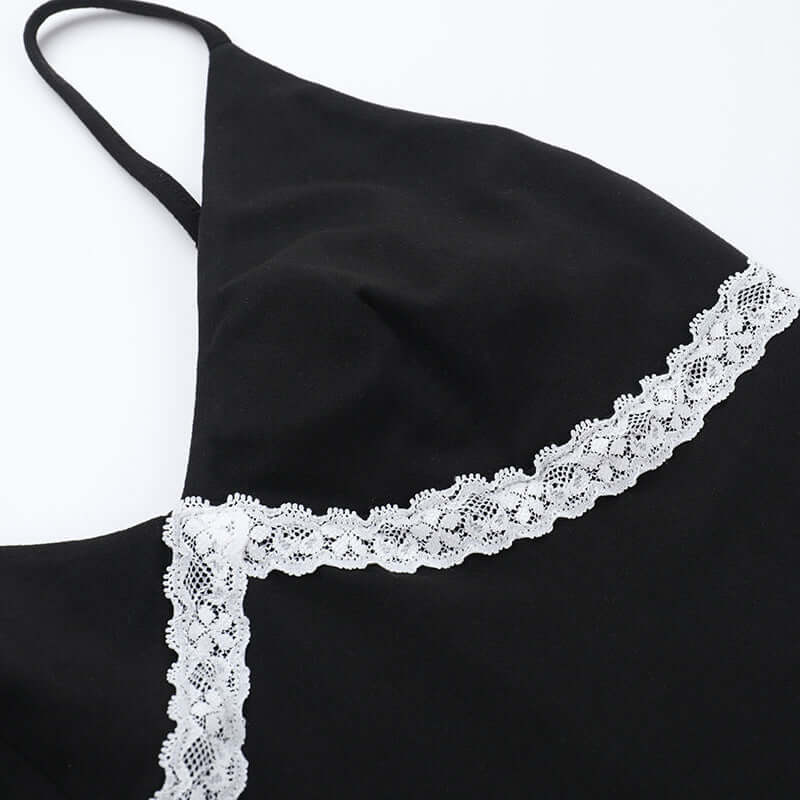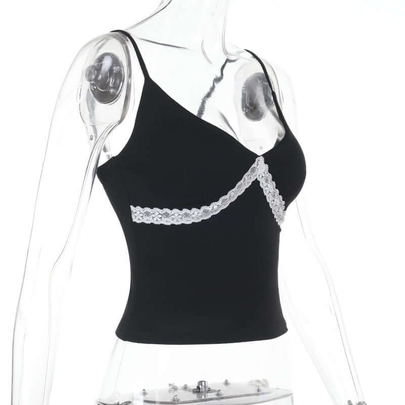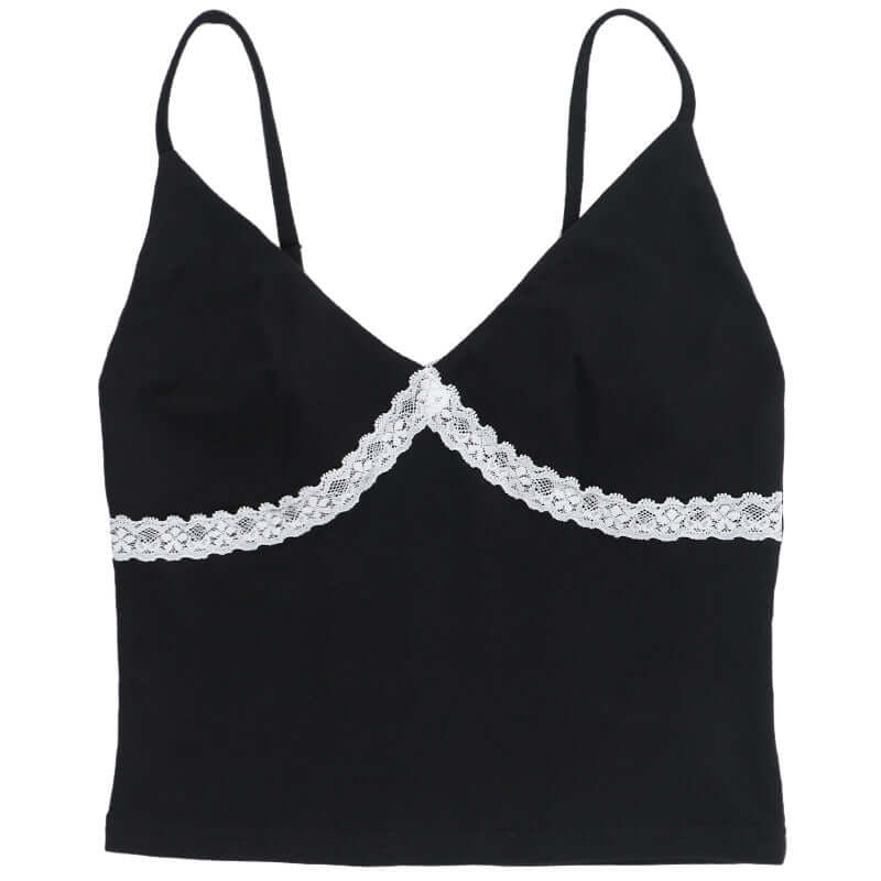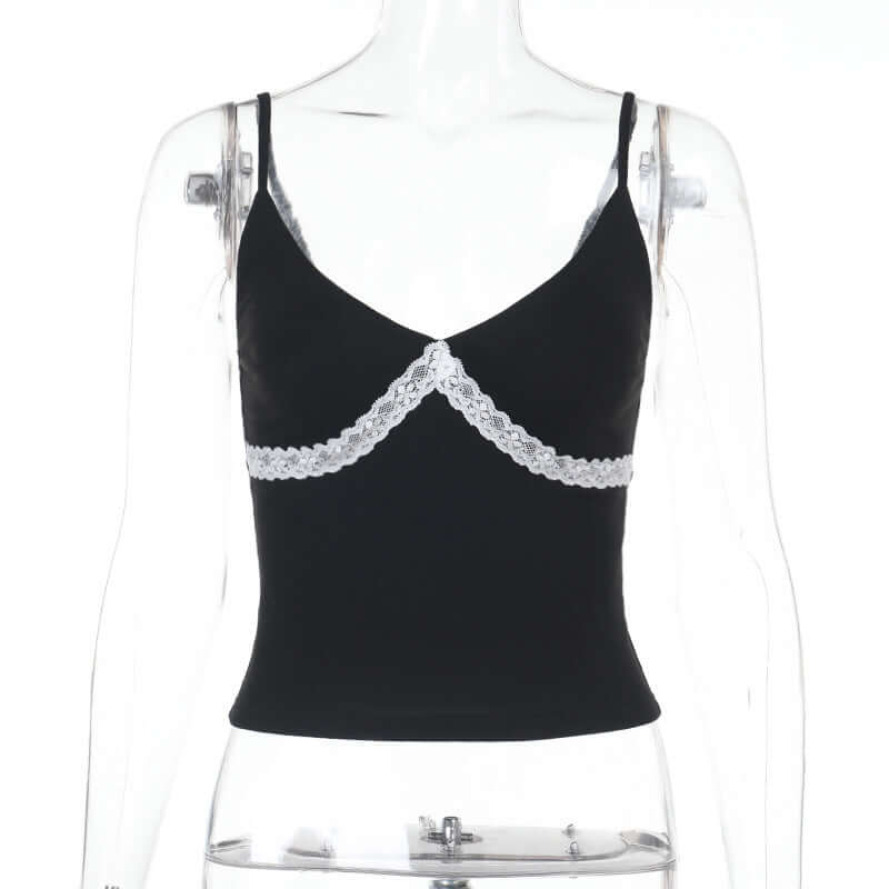 Top de Cuello en V con Apliques de Encaje – Corte Ajustado