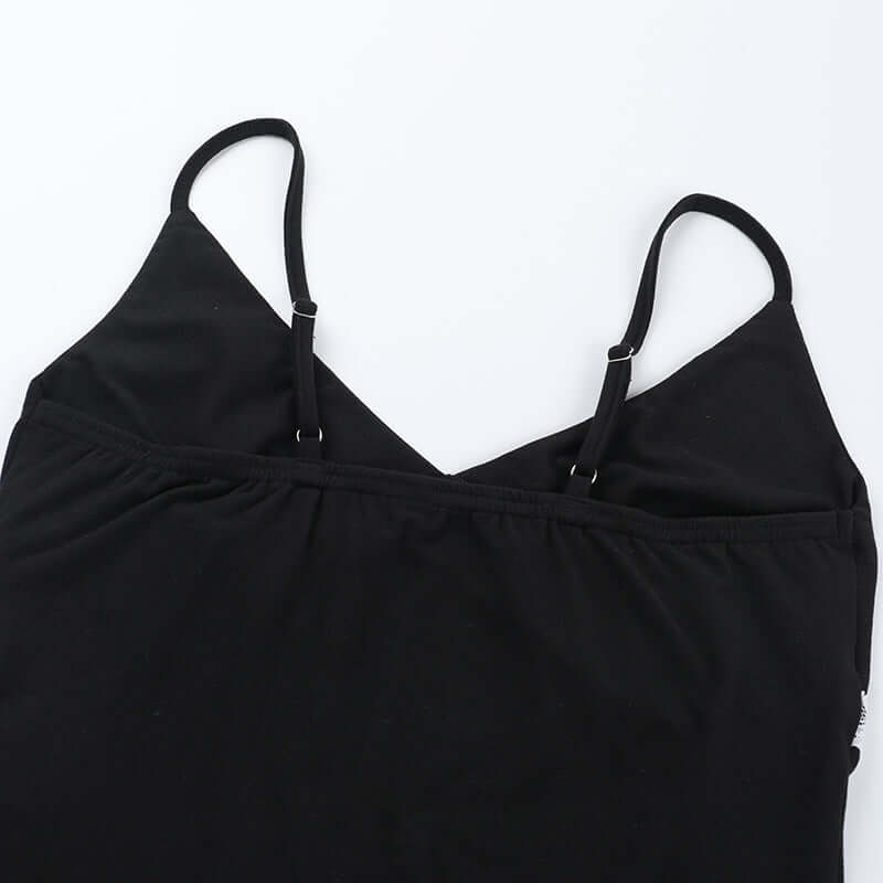 Confeccionada con una mezcla de poliéster y spandex, la tela ofrece un suave estiramiento, una textura lisa y un ajuste ceñido que realza las curvas naturales. El escote en V destaca la clavícula y el escote, mientras que el perfil ajustado facilita combinarla con jeans, faldas o prendas exteriores en capas. Terminada en un clásico negro, esta pieza ofrece una versatilidad atemporal con un toque sexy y refinado.