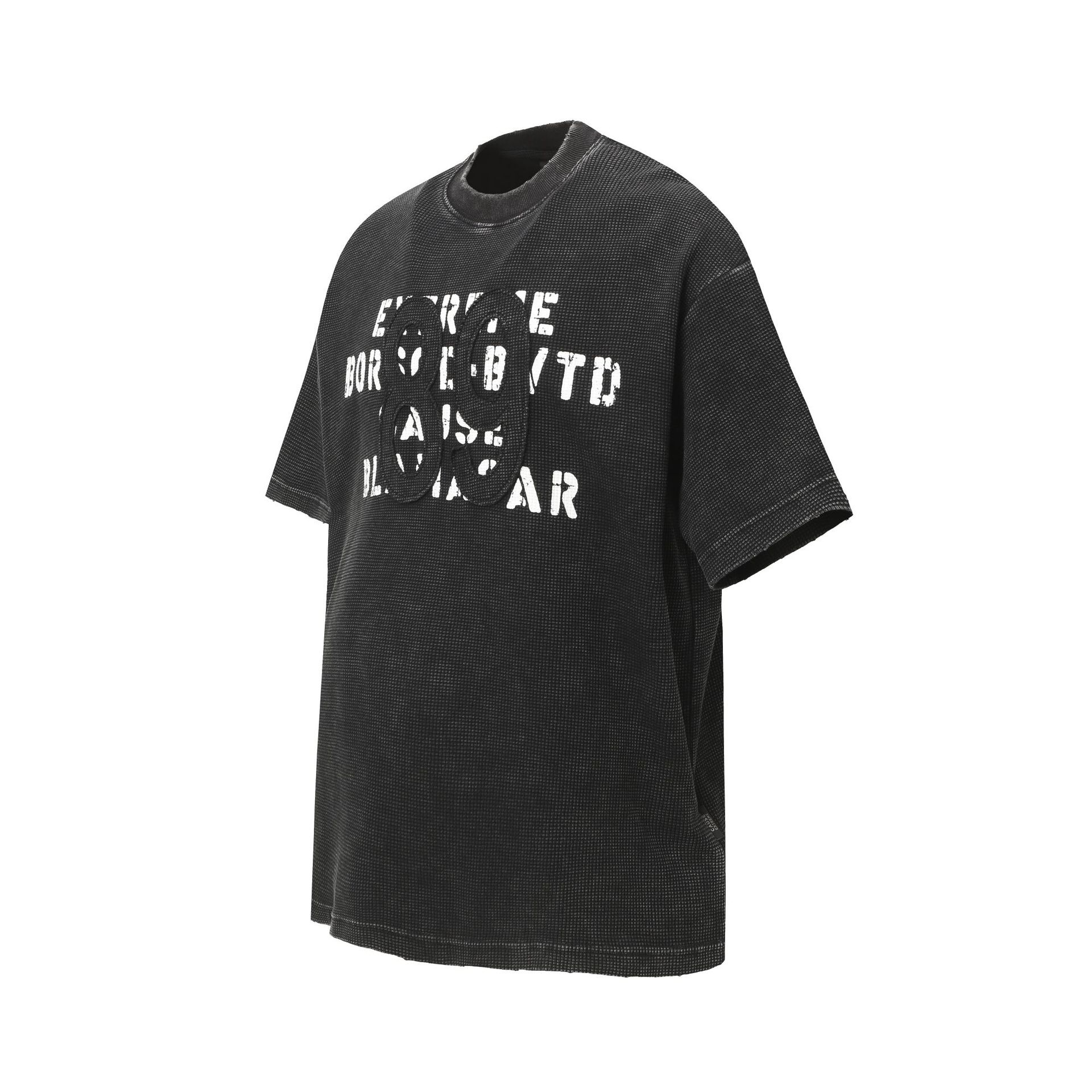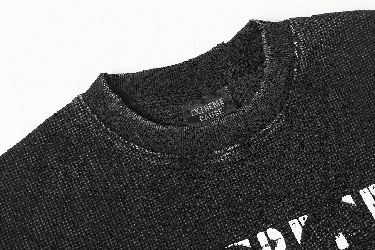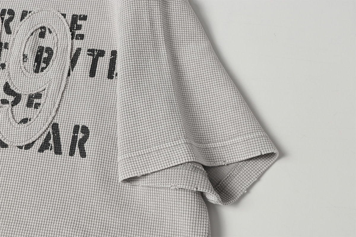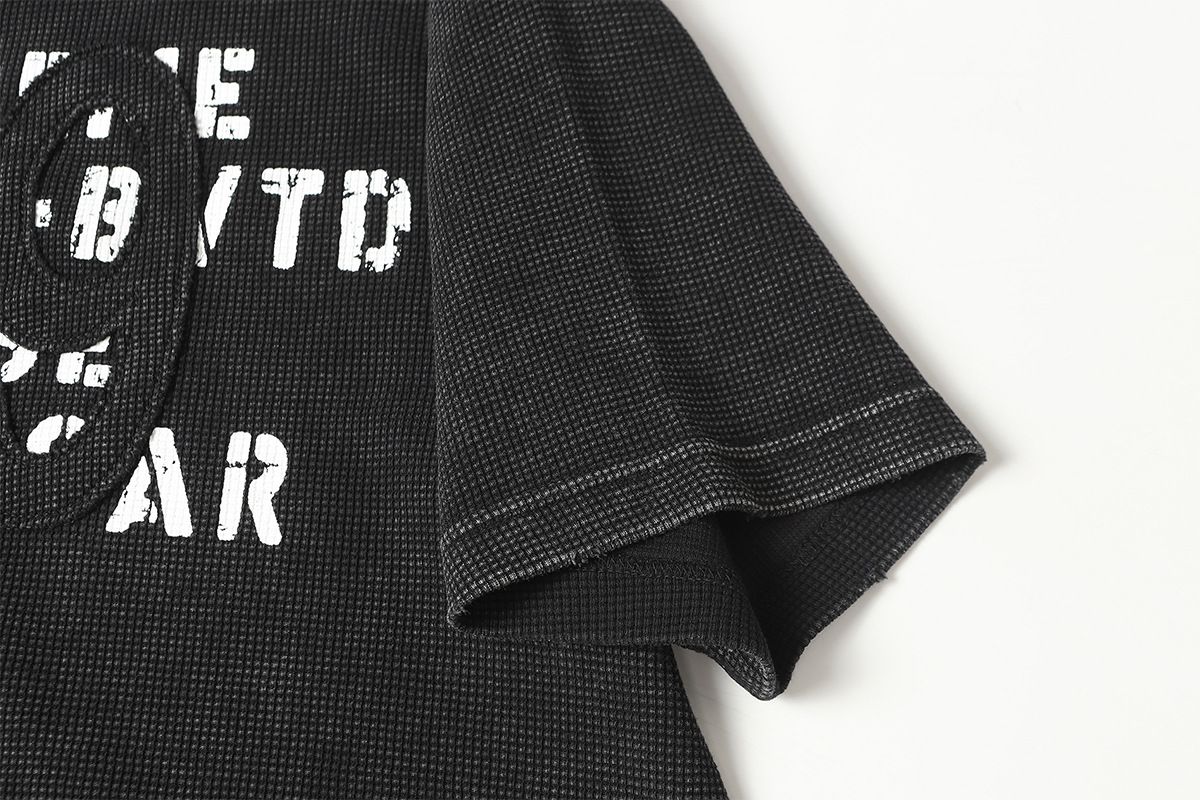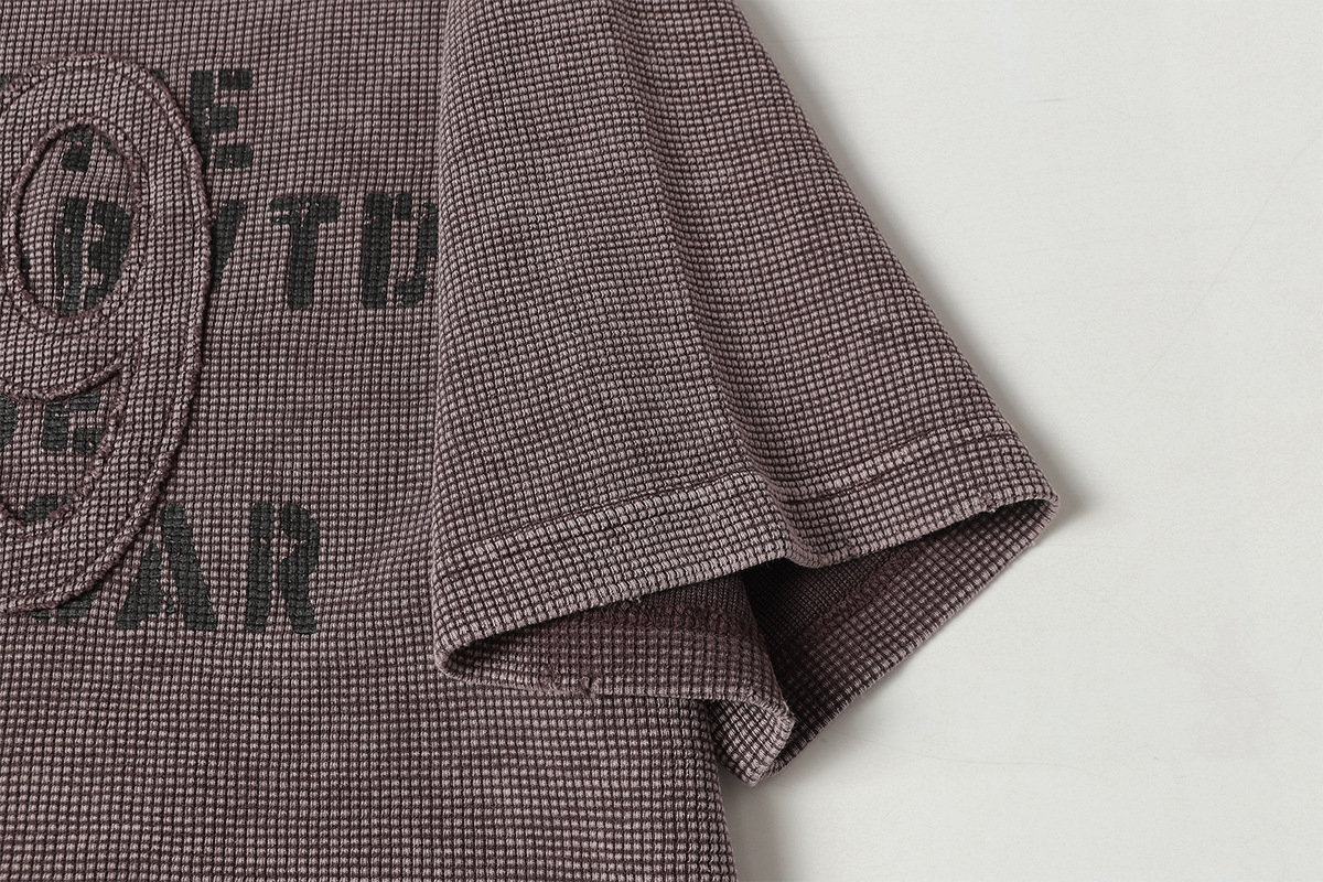 Retro waffle washed pure cotton loose T-shirt