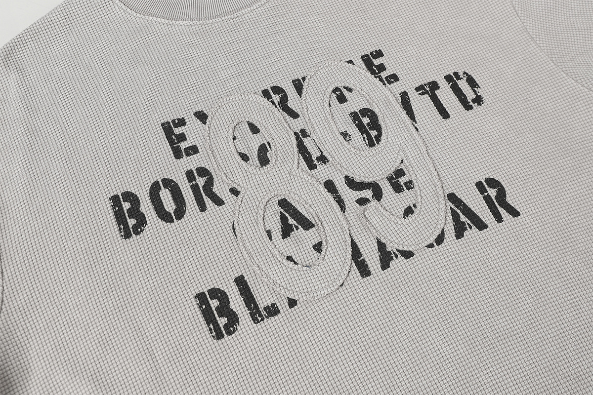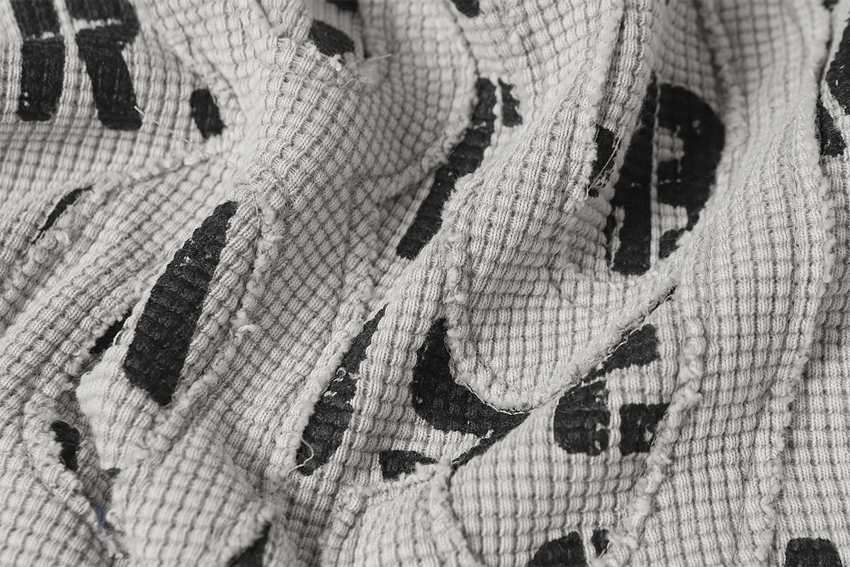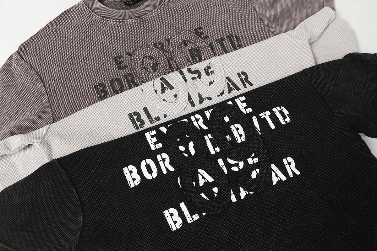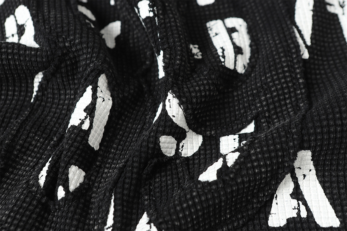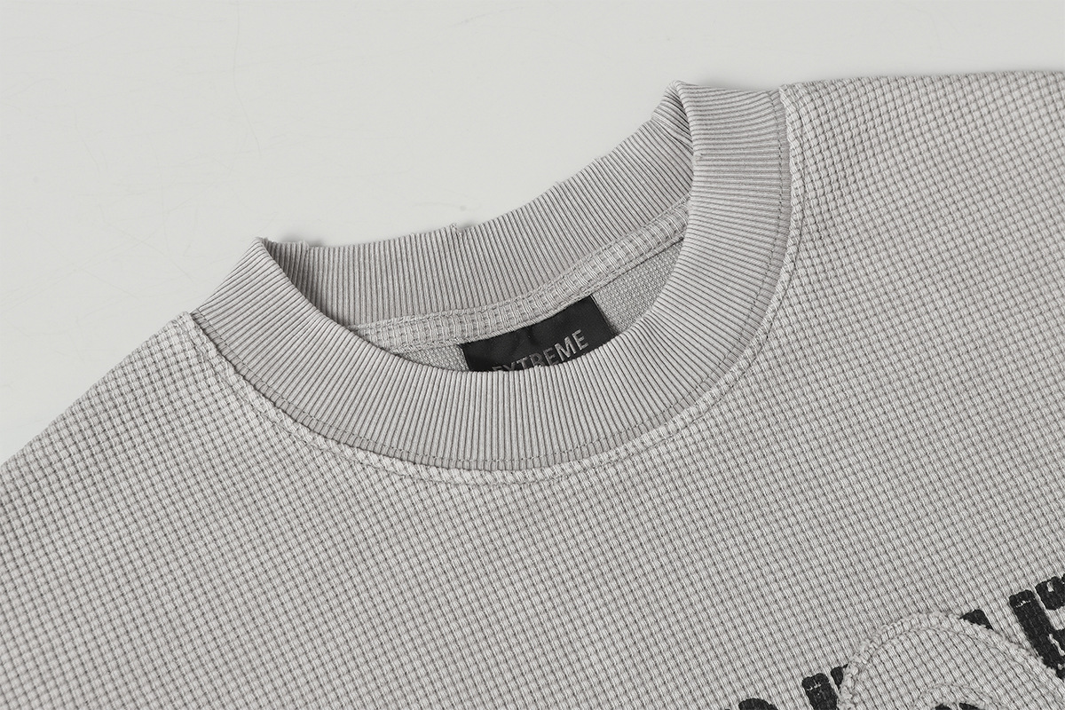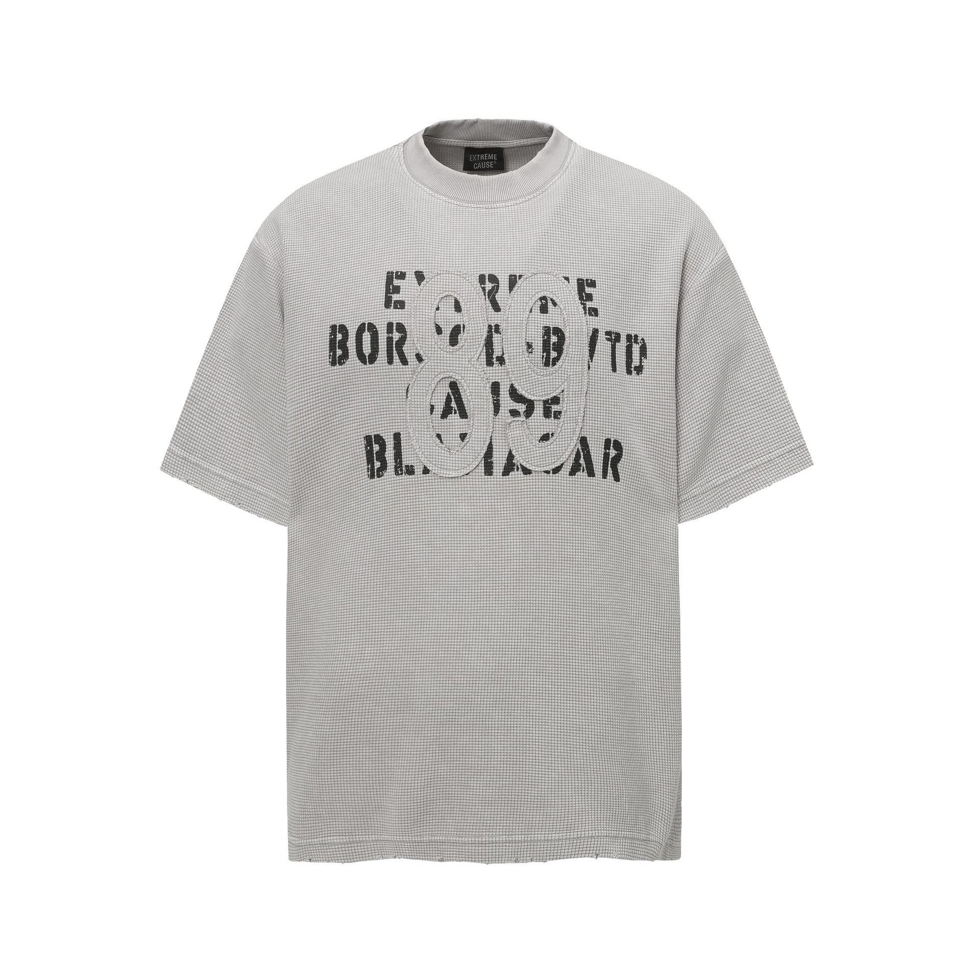 Retro waffle washed pure cotton loose T-shirt