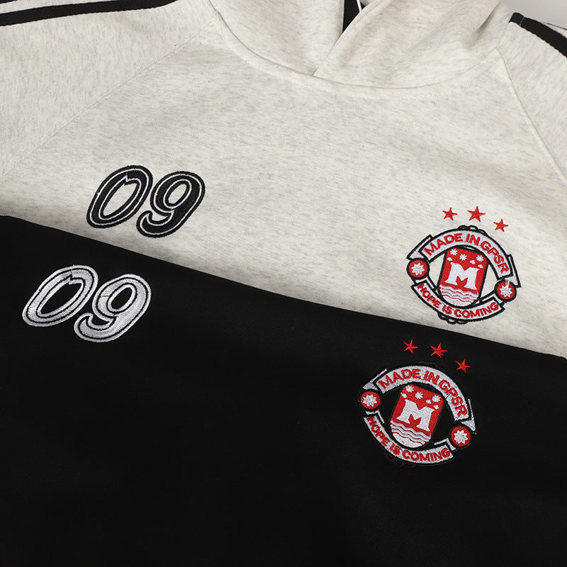 Mantente cómodamente y con estilo en un sudadera con capucha de corte relajado con energía retro urbana.
