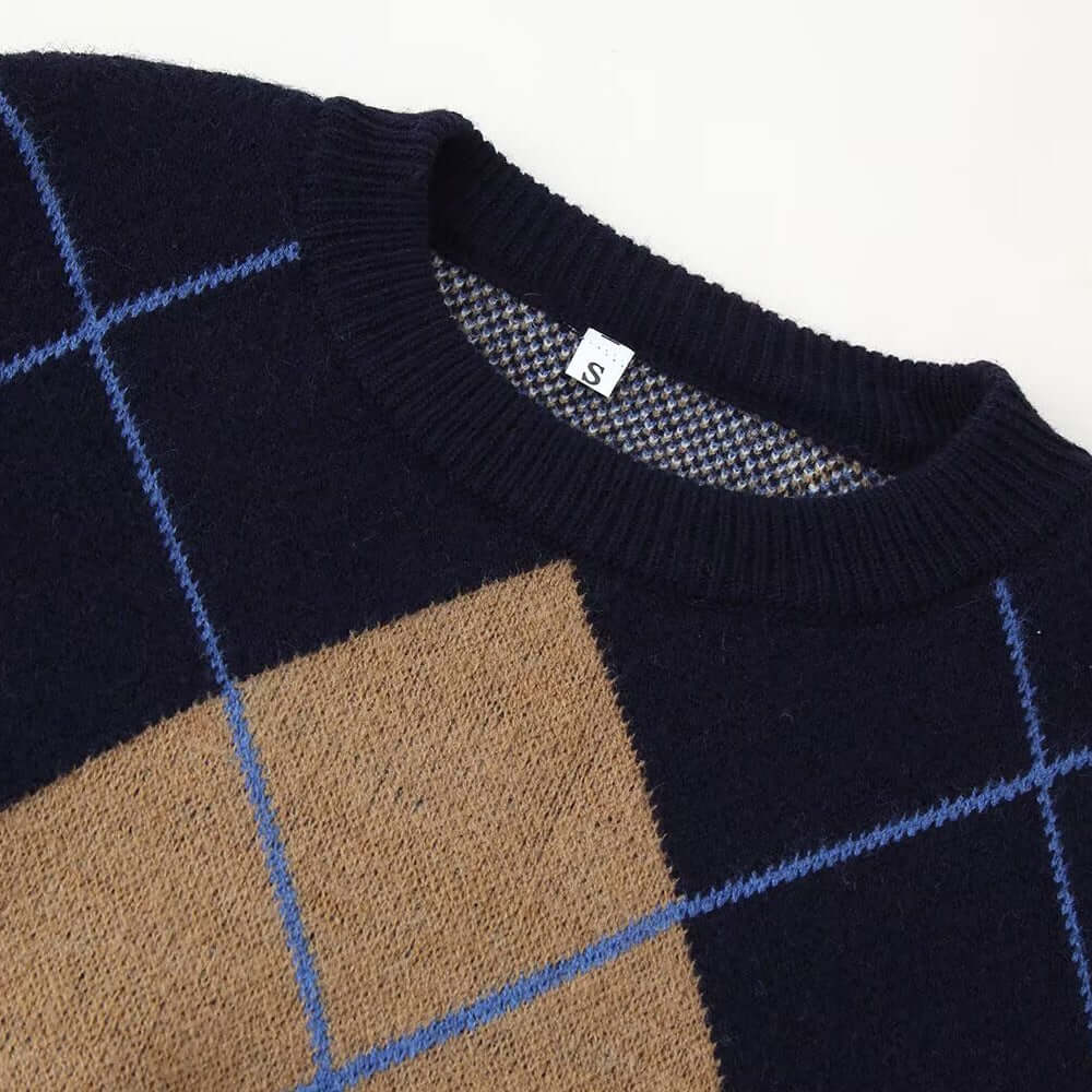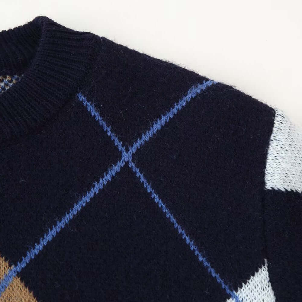 Suéter de Cuello Redondo con Diseño de Diamante Retro