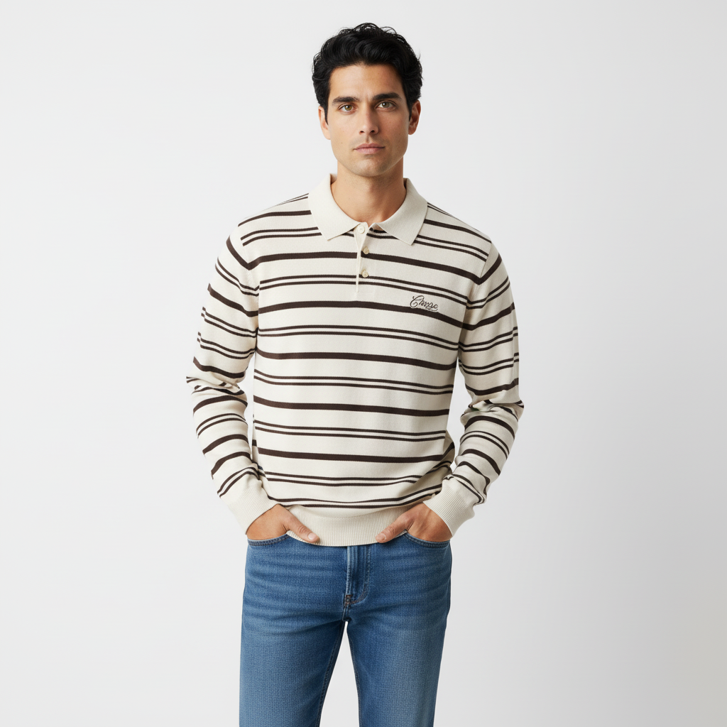 Adéntrate en el estilo streetwear con este suéter de pullover con bordado de letras y rayas, diseñado para un look...