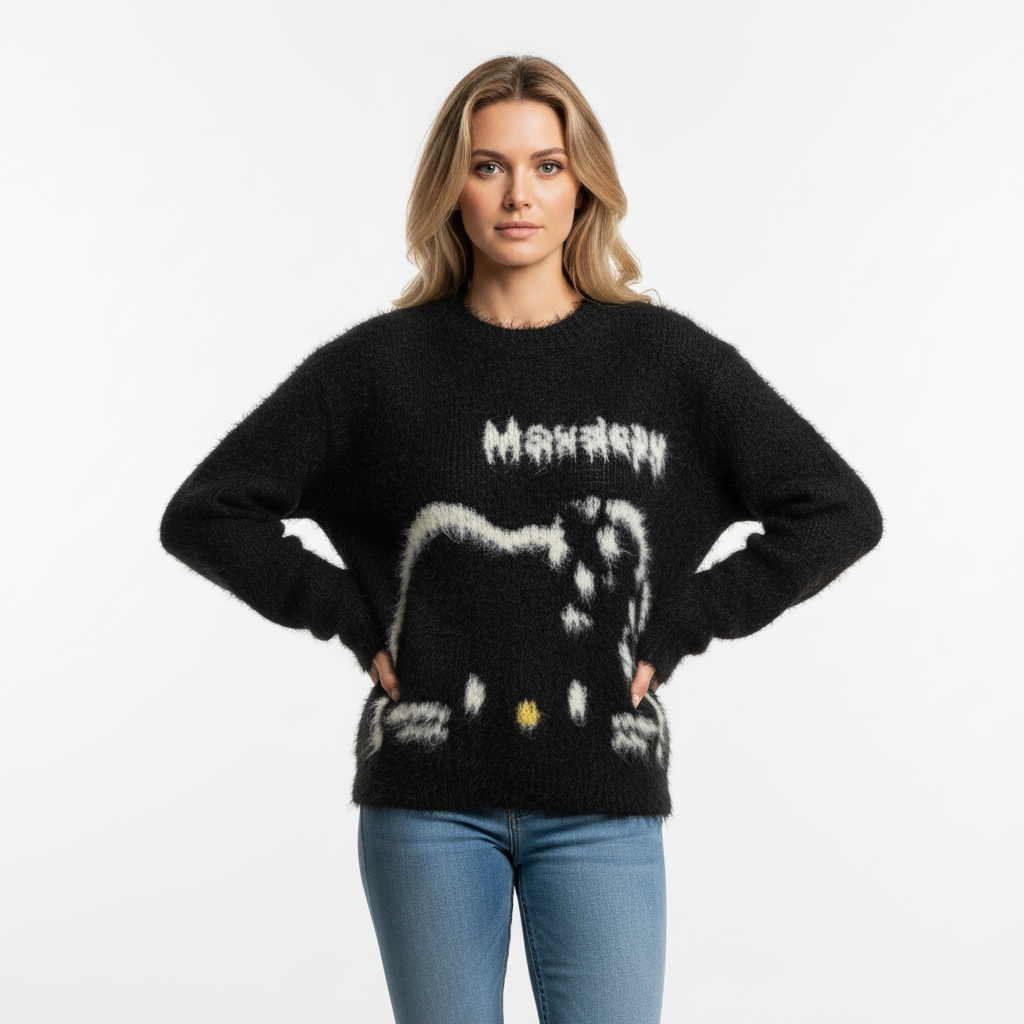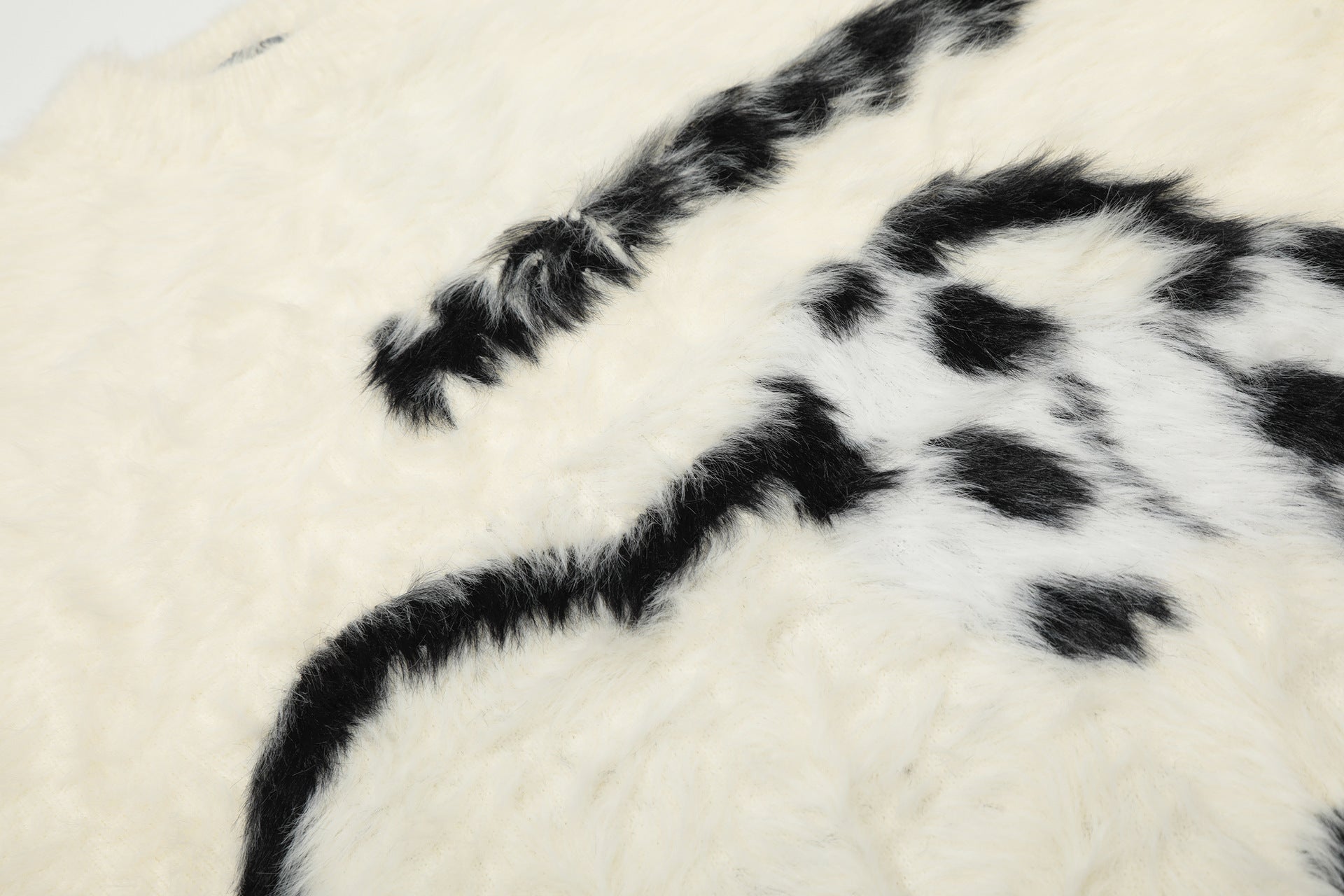 Suéter de felpa gruesa y cálida con estampado de animal, de corte regular y acabado sin arrugas, ideal para un estilo urbano cómodo y elegante.
