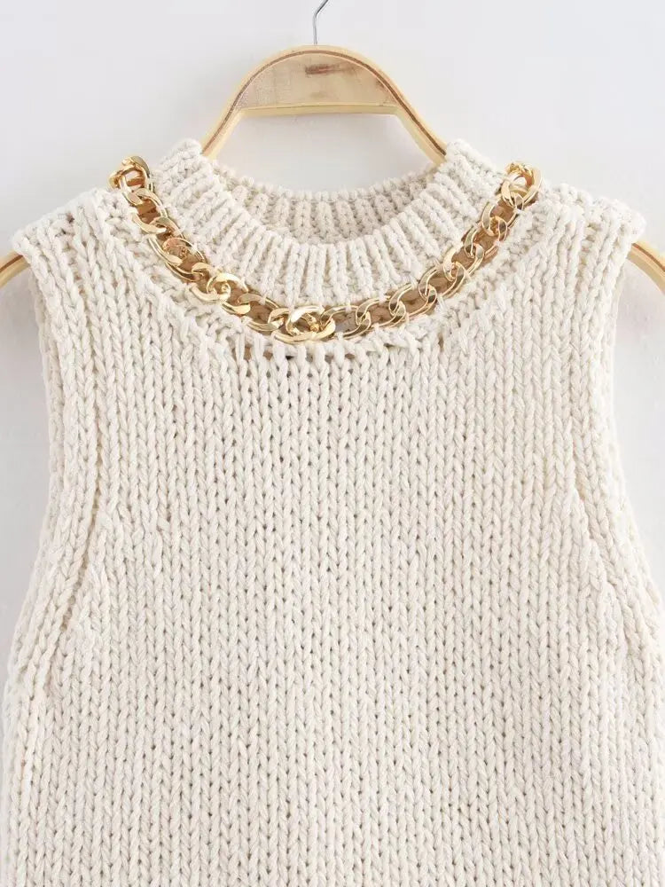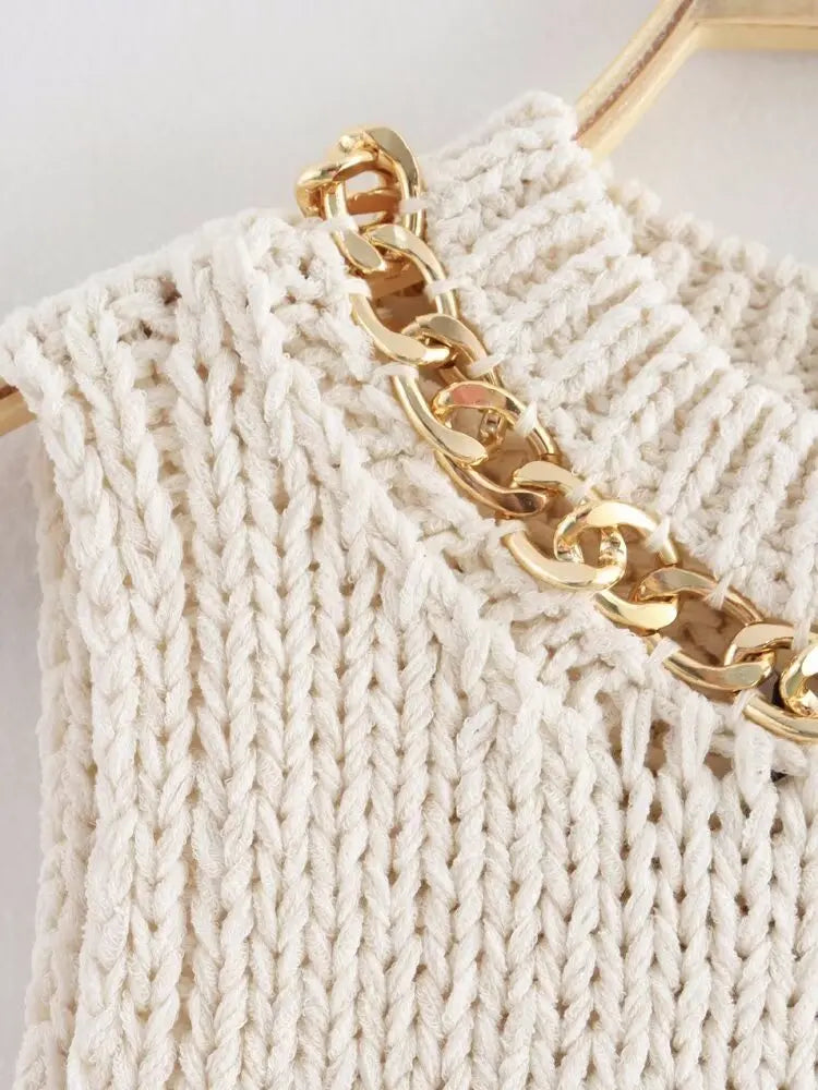 La Grozavu Asymmetrical Chain Knit Tank Top es una pieza atrevida y de moda callejera inspirada en la moda europea...