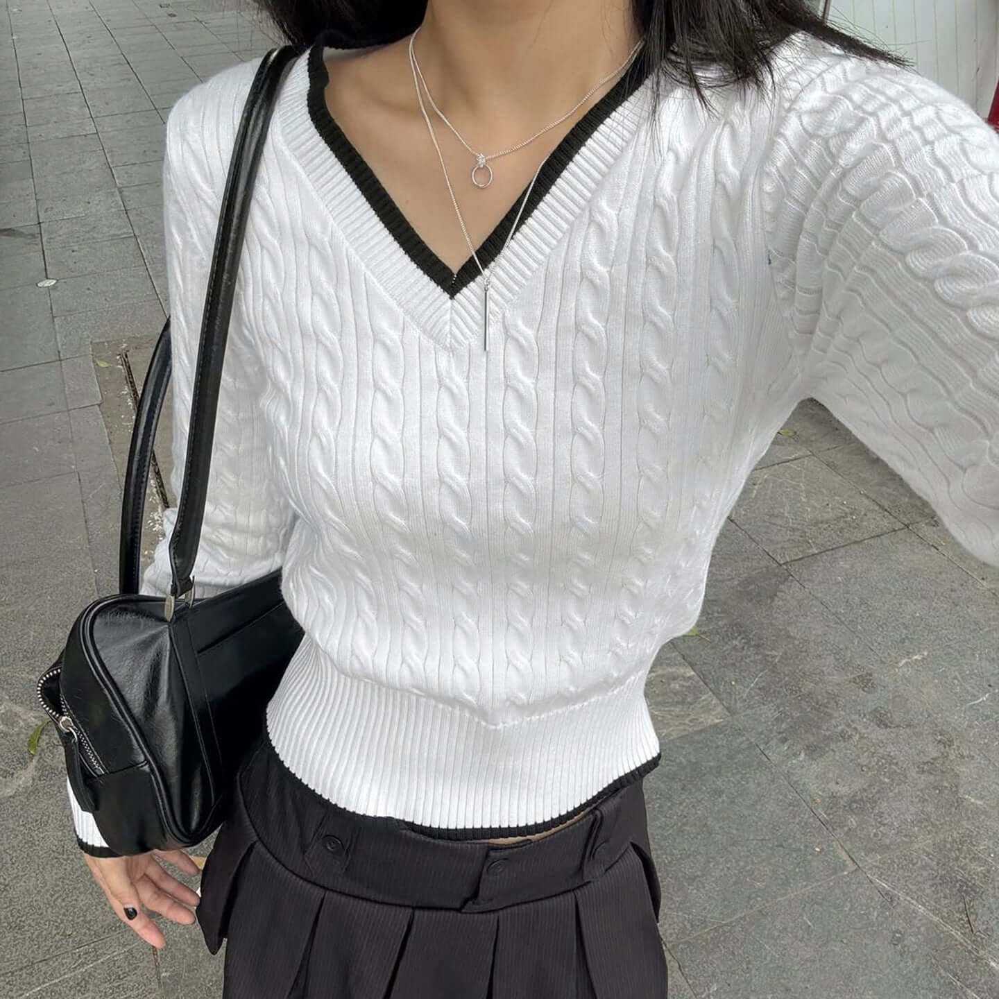 El Suéter de Cuello en V de Color Sólido y Manga Larga es un esencial atemporal diseñado para un estilo...