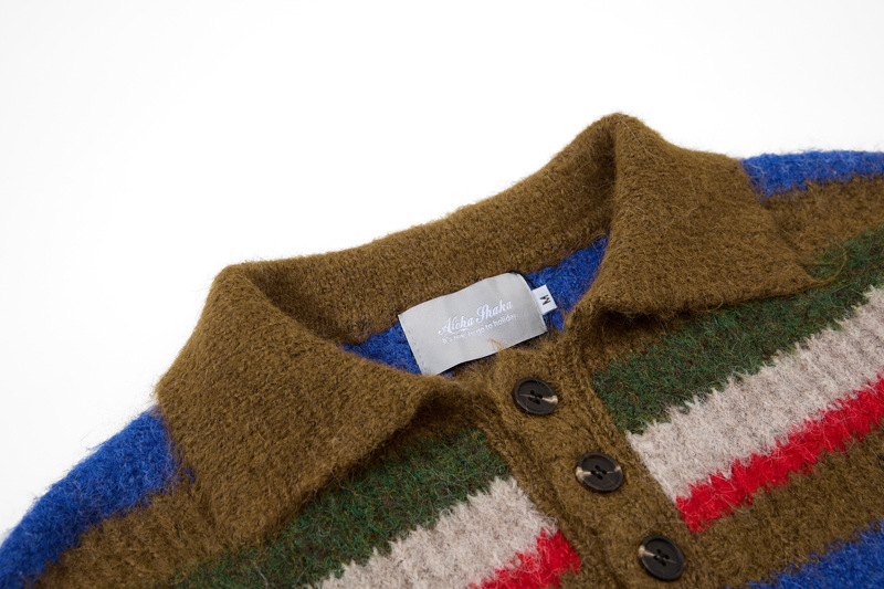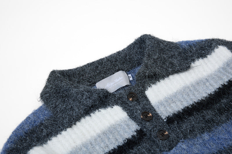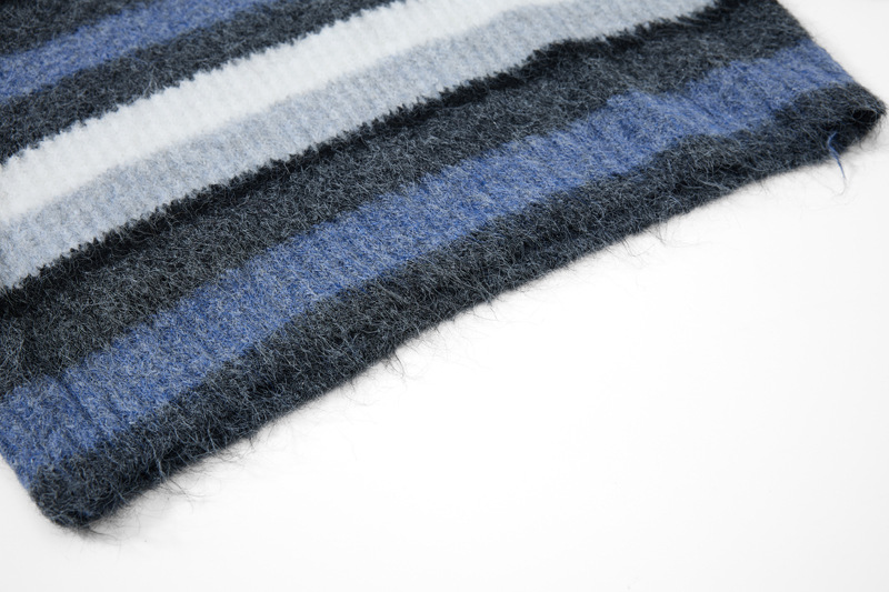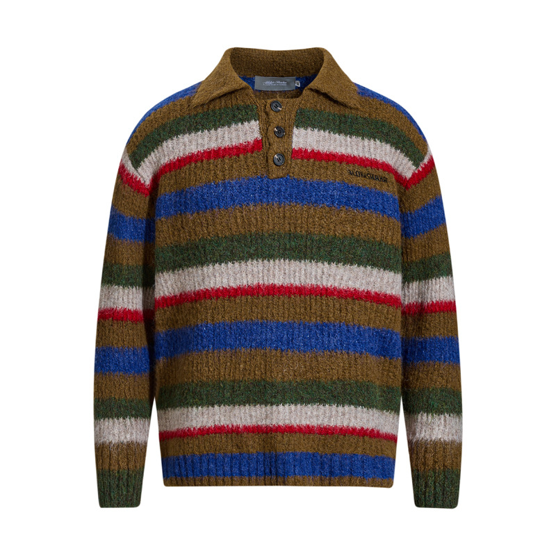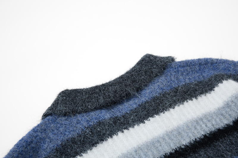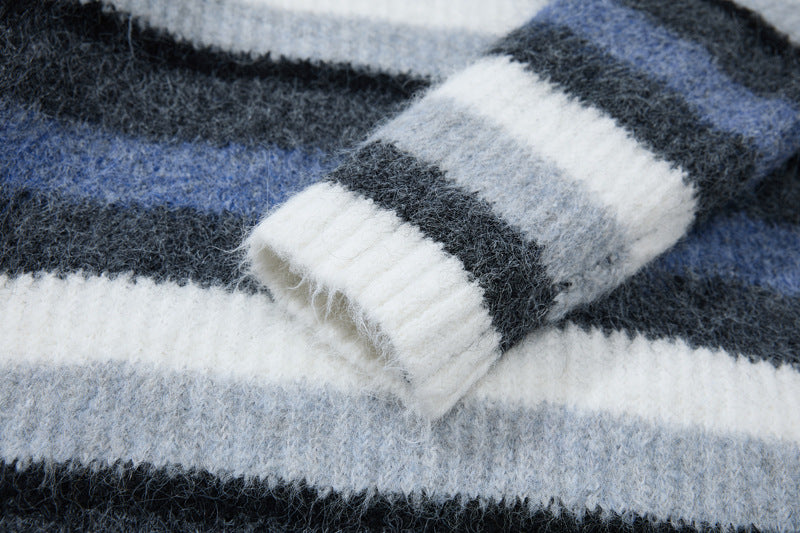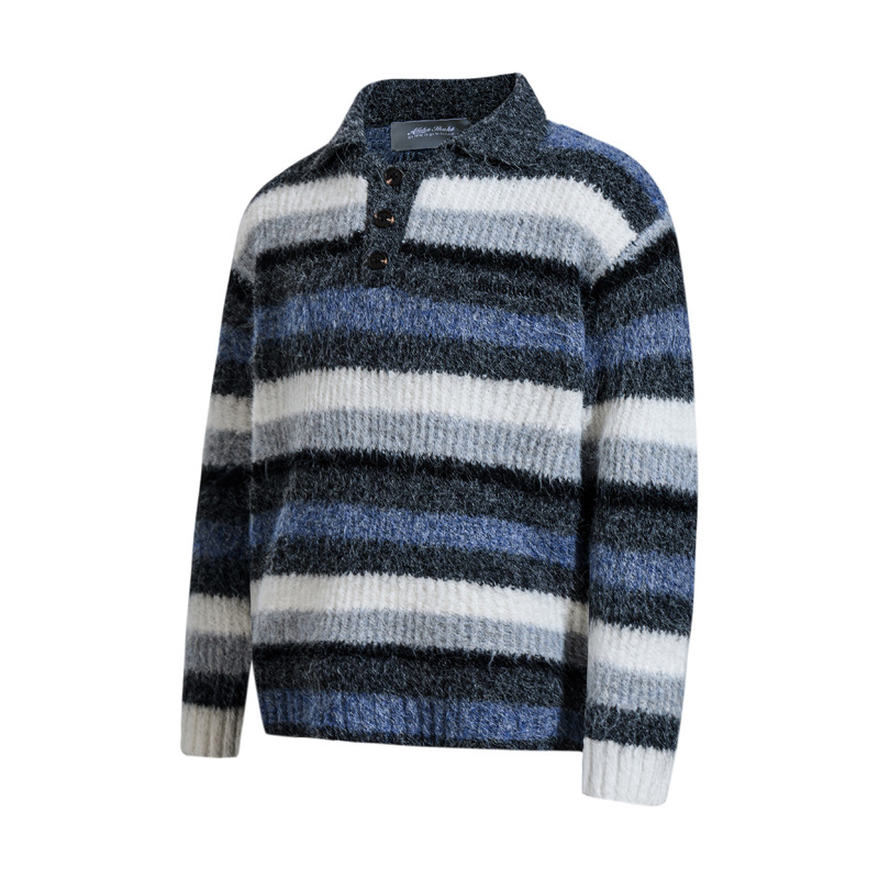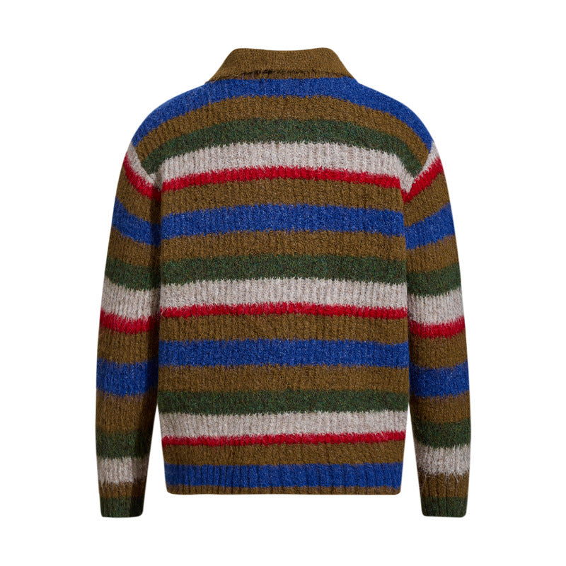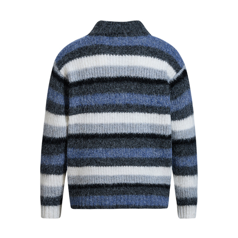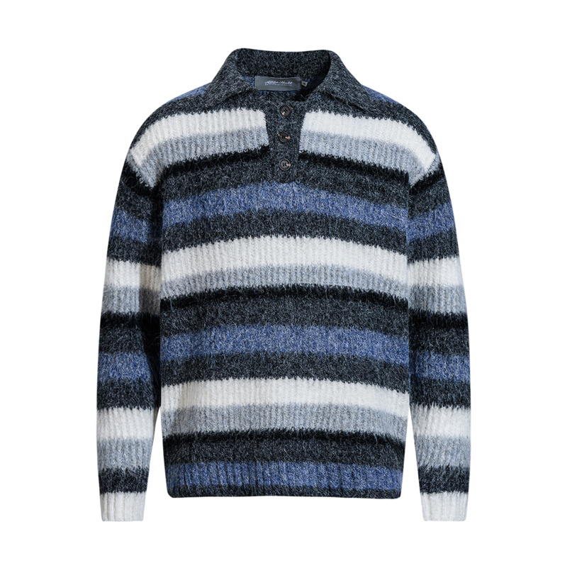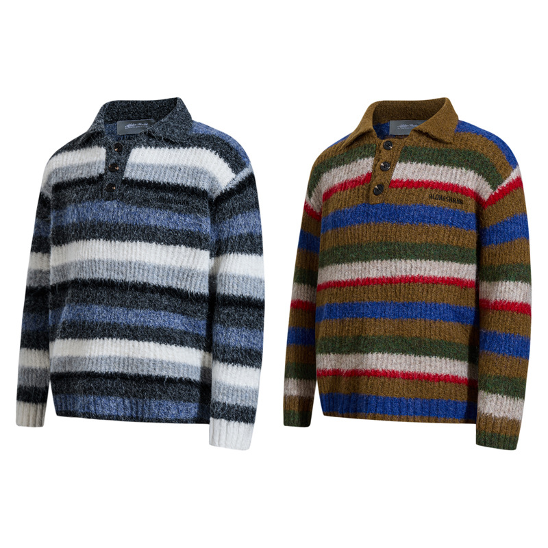 - Suave suéter de punto de polo de rayas bordadas de corte holgado para una moda urbana unisex cálida, transpirable y con estilo.