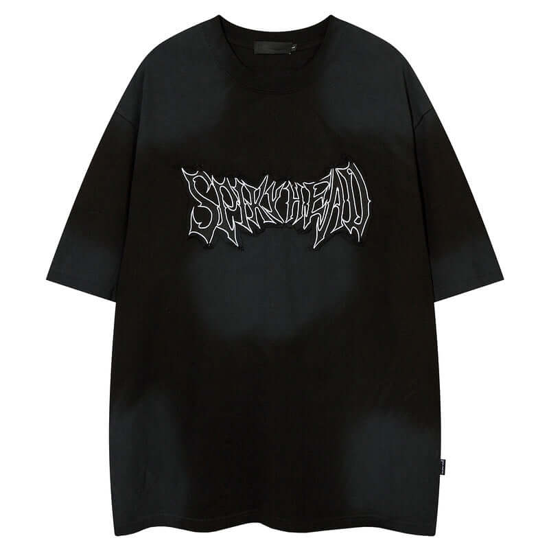 Camiseta de algodón puro con bordado de parches, de corte holgado y transpirable, con hombros caídos y alta resistencia al color, ideal para una vestimenta unisex de verano cómoda y con estilo.