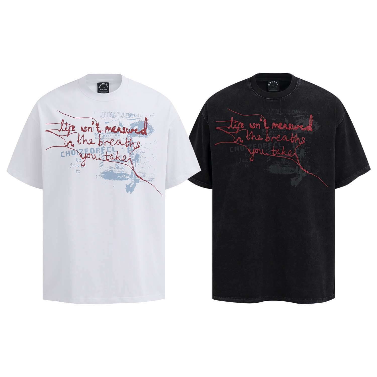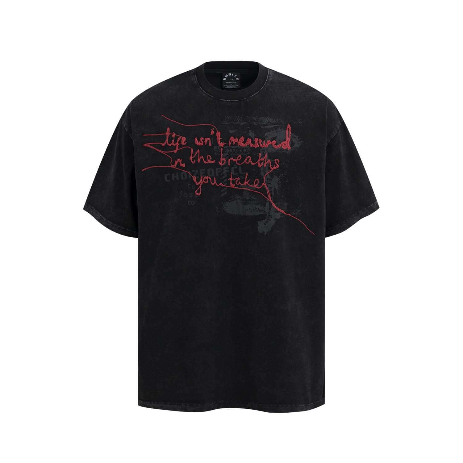 Camiseta de Letras Lavada Retro – Corte Suelto