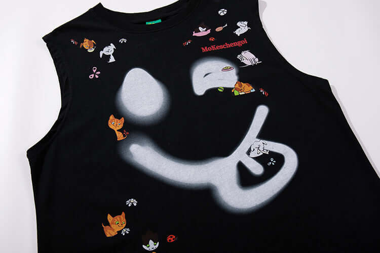 Camiseta sin mangas con estampado de graffiti de Smiley