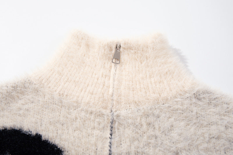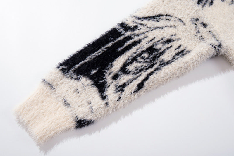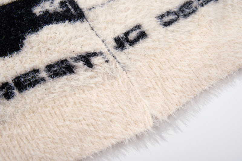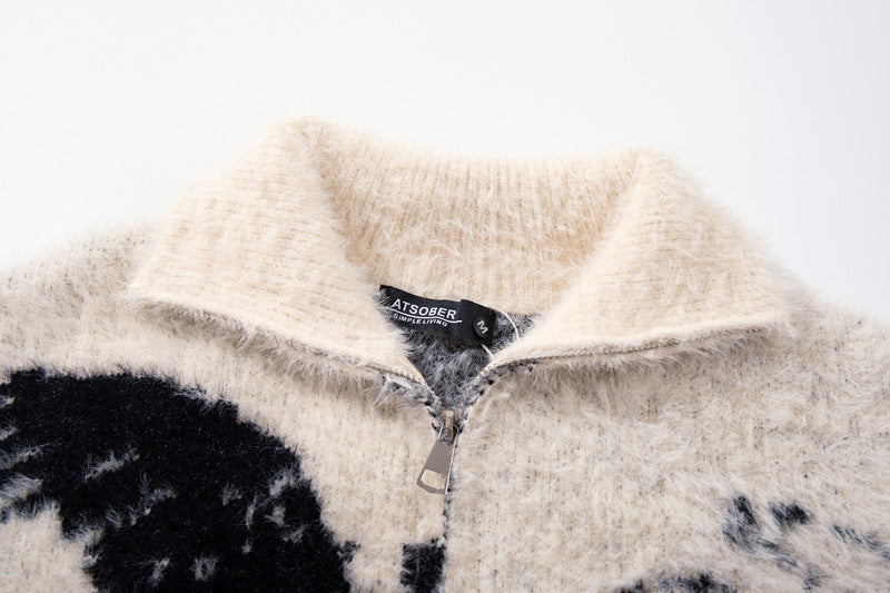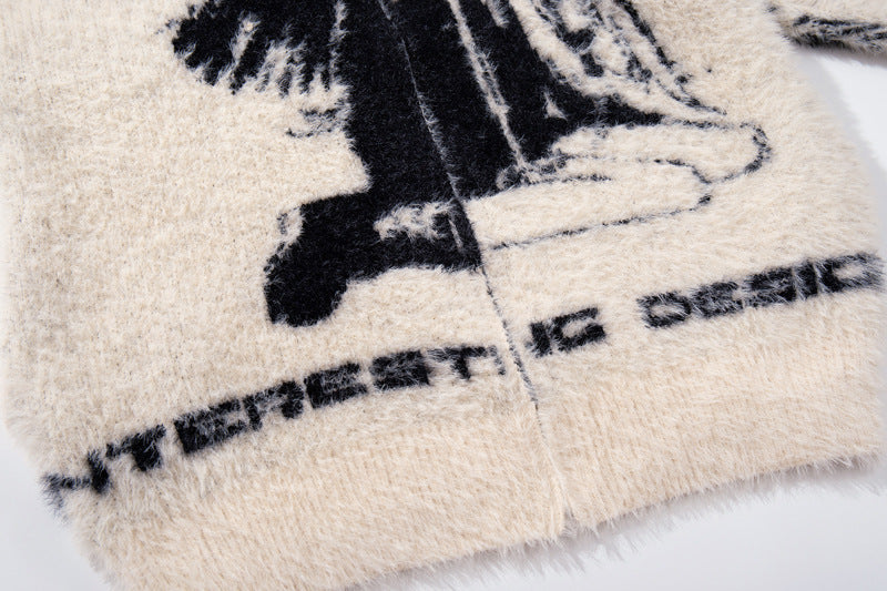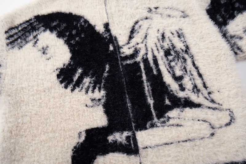 Expressive streetwear with angel girl floral jacquard design, cozy loose fit, and lightweight autumn-winter comfort.