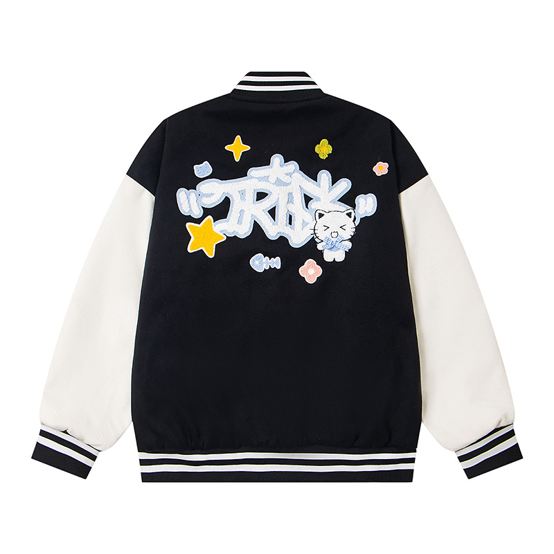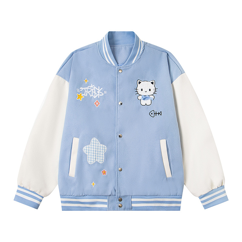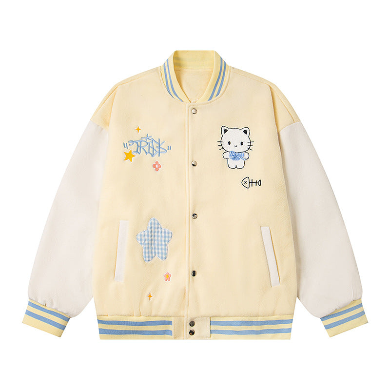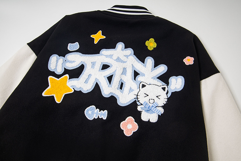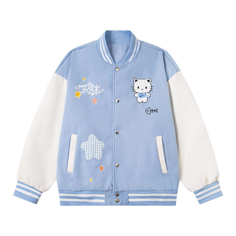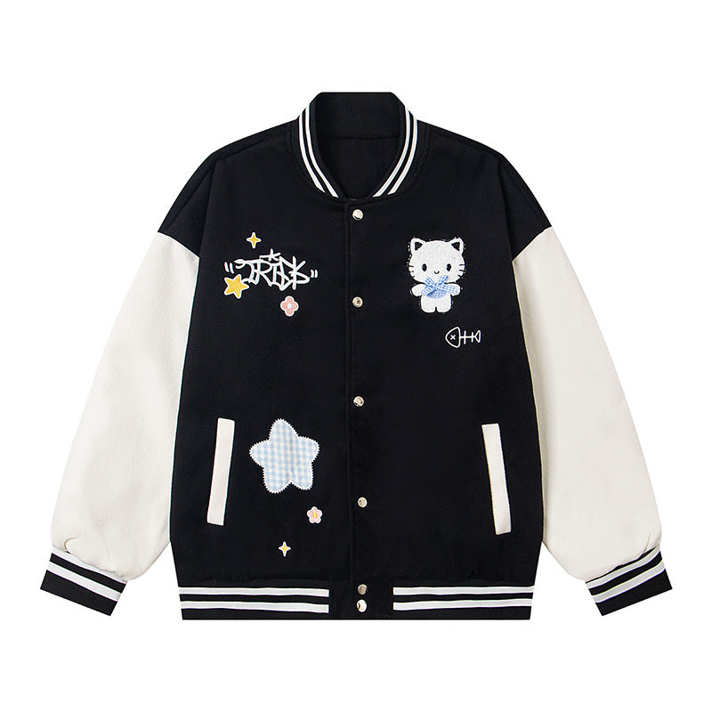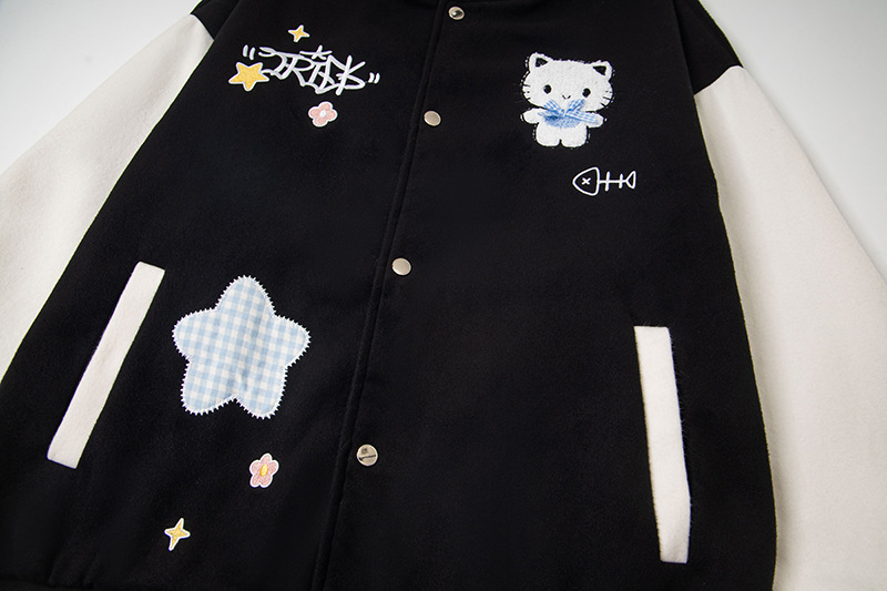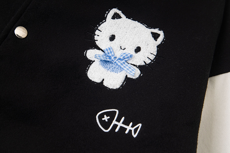 Embroidery Cute Cat Baseball Jacket Women Loose Korean Chic Jacket