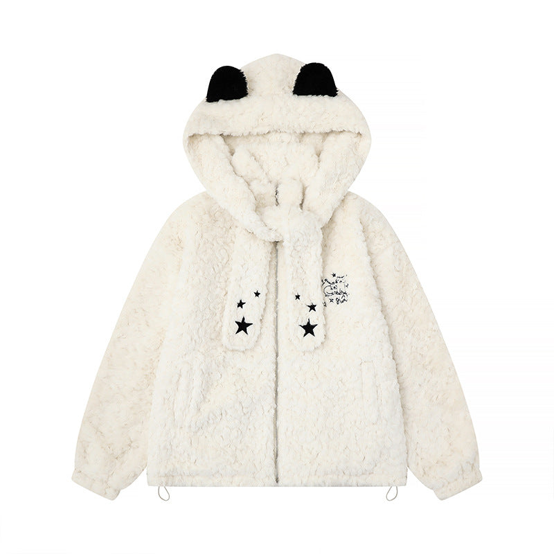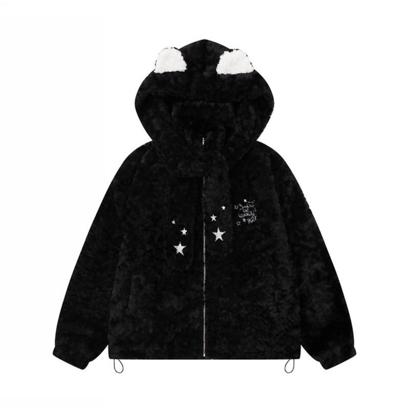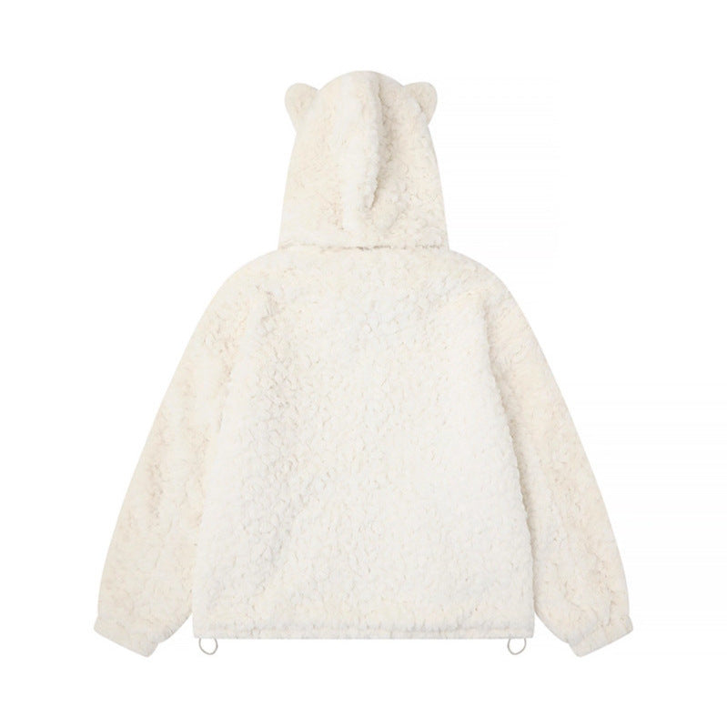 Hood Lamb Wool Cotton Coat Winter Thick Warm Fuzzy Cotton Jacket Outerwear
