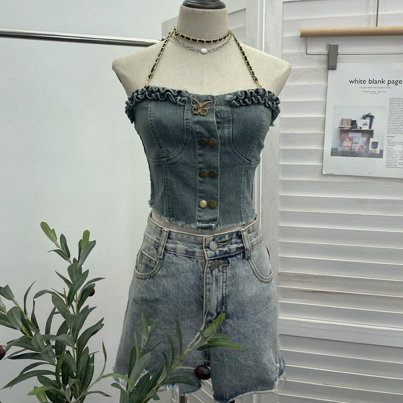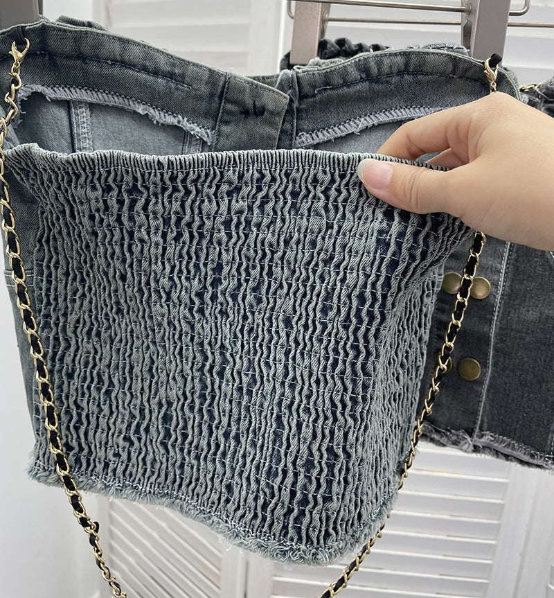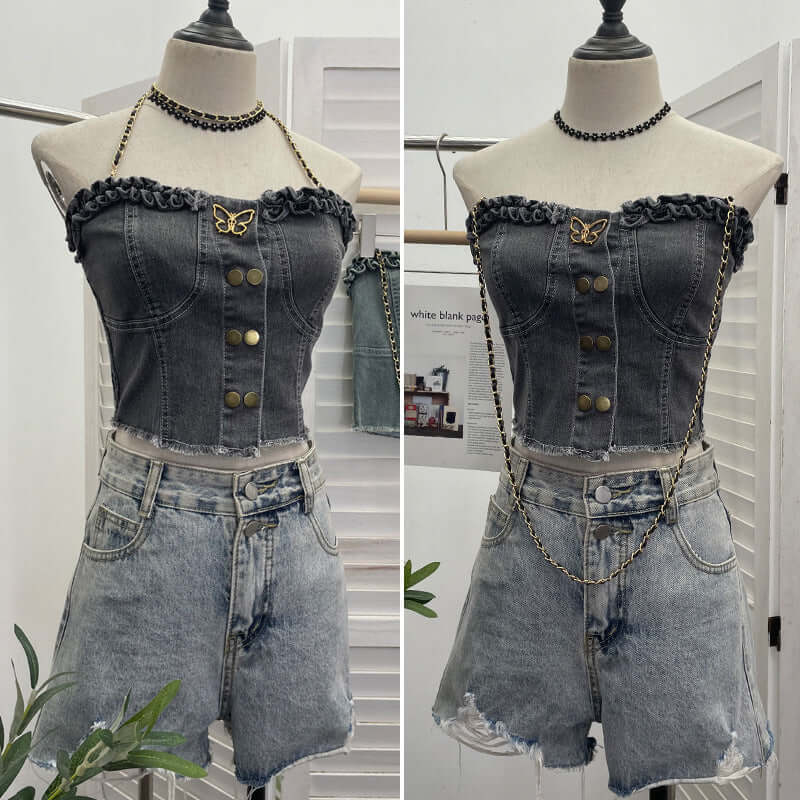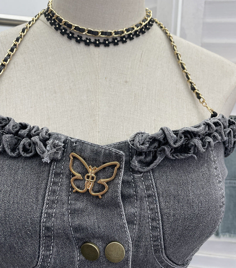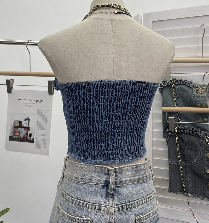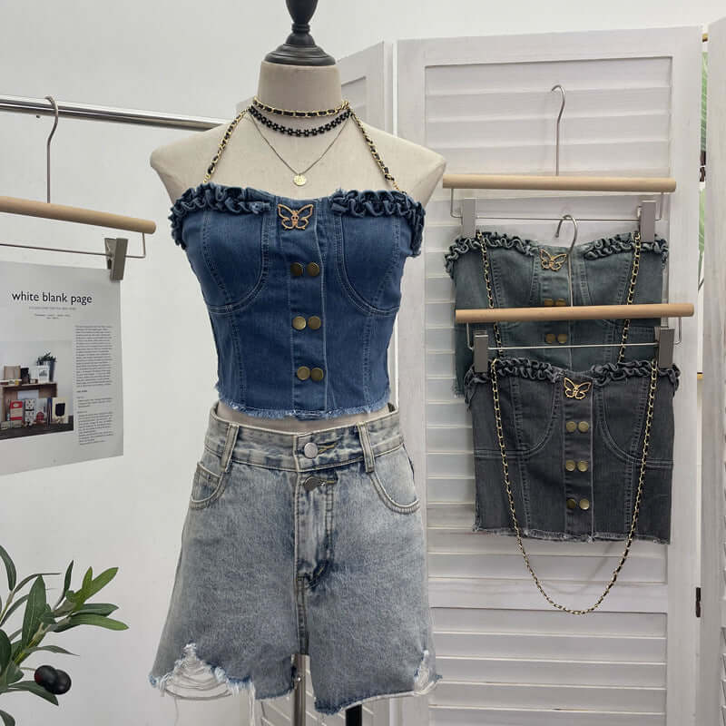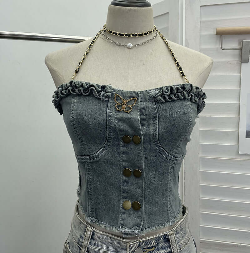 Faites tourner les têtes avec le débardeur Cowboy Denim à bretelles à boucle, conçu pour les femmes qui aiment une...