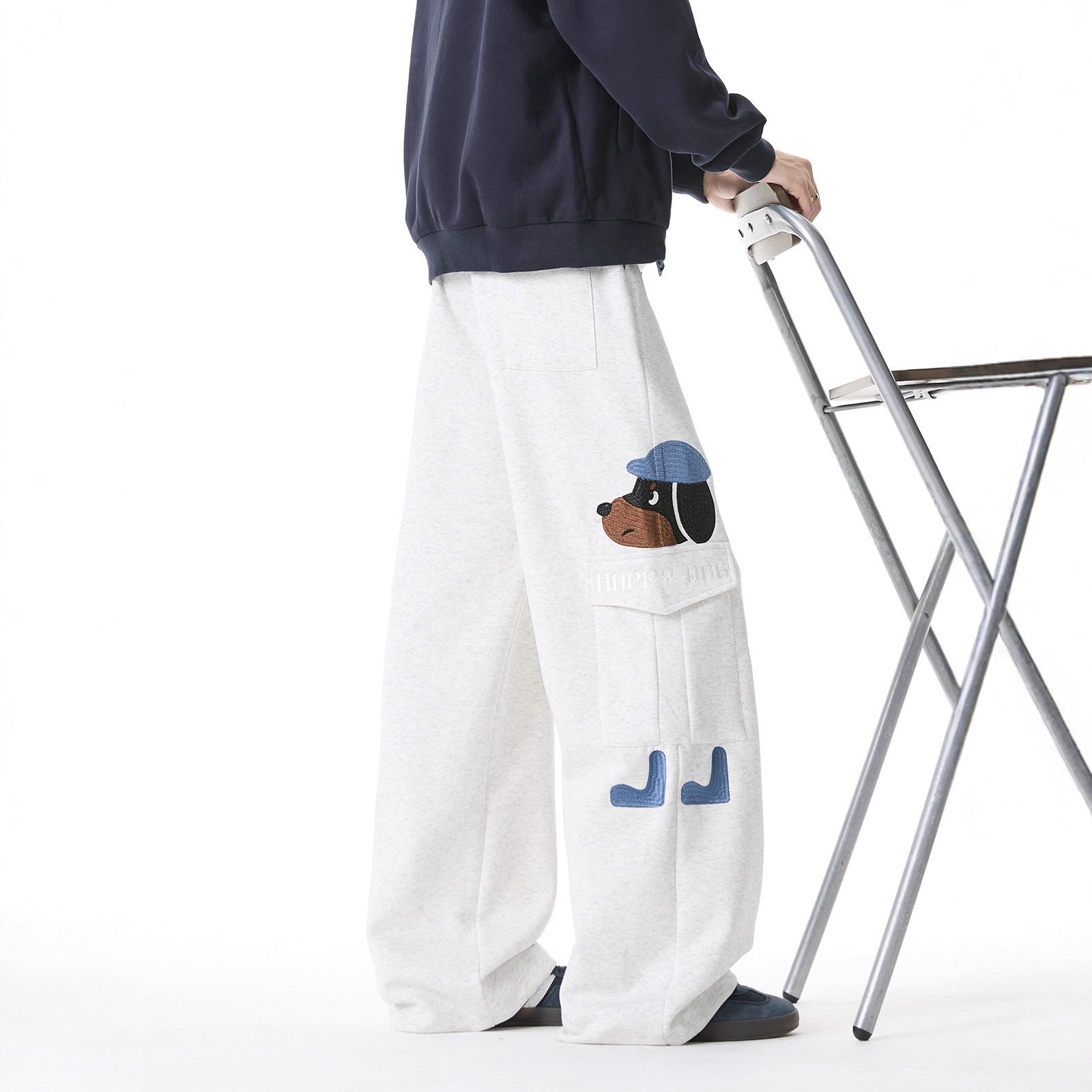 Dog Embroidery Sweatpants Men's Autumn Vintage Multi-Pocket Casual Pants High Street Versatile Drawstring Loose Sport Pants