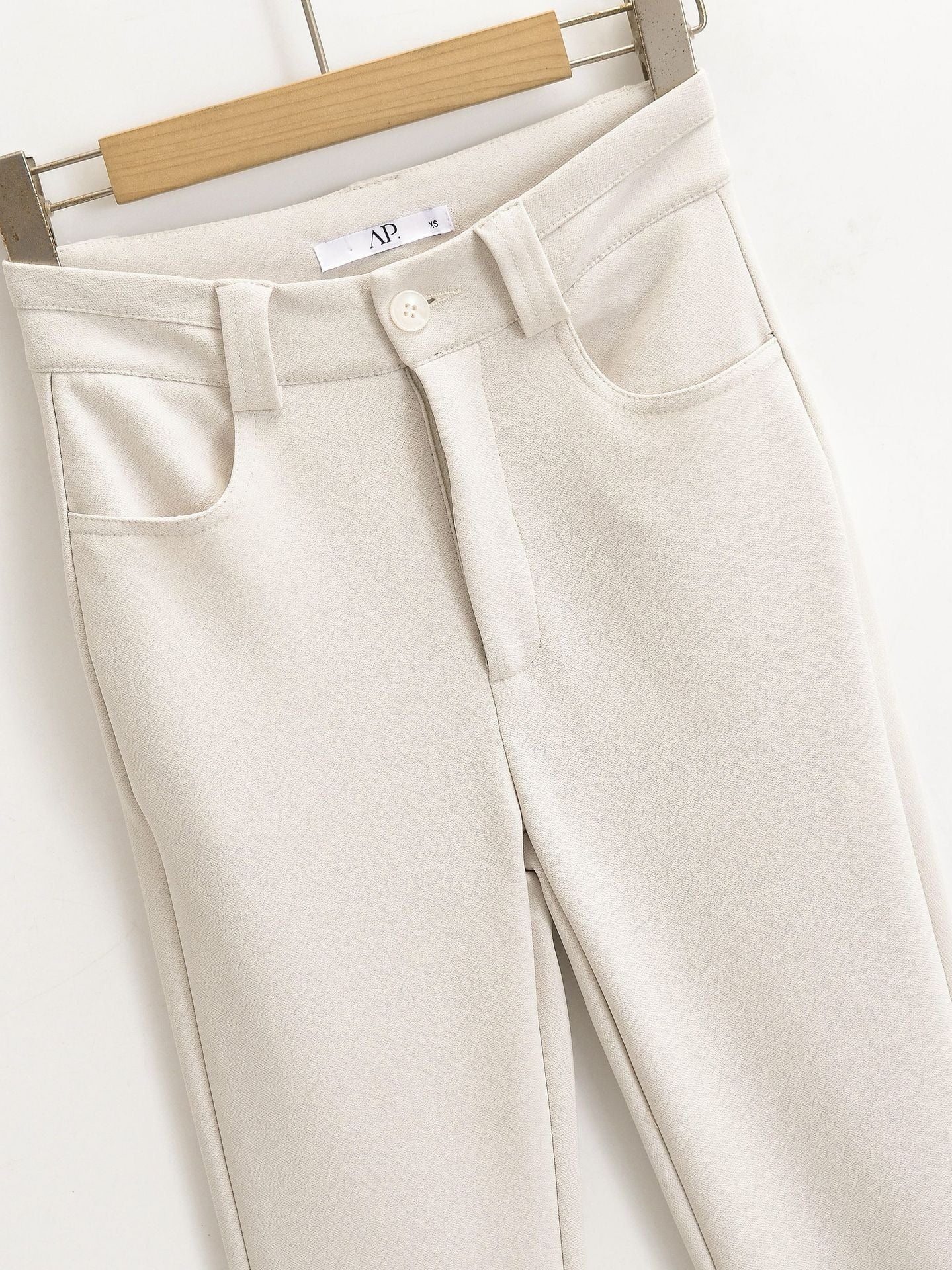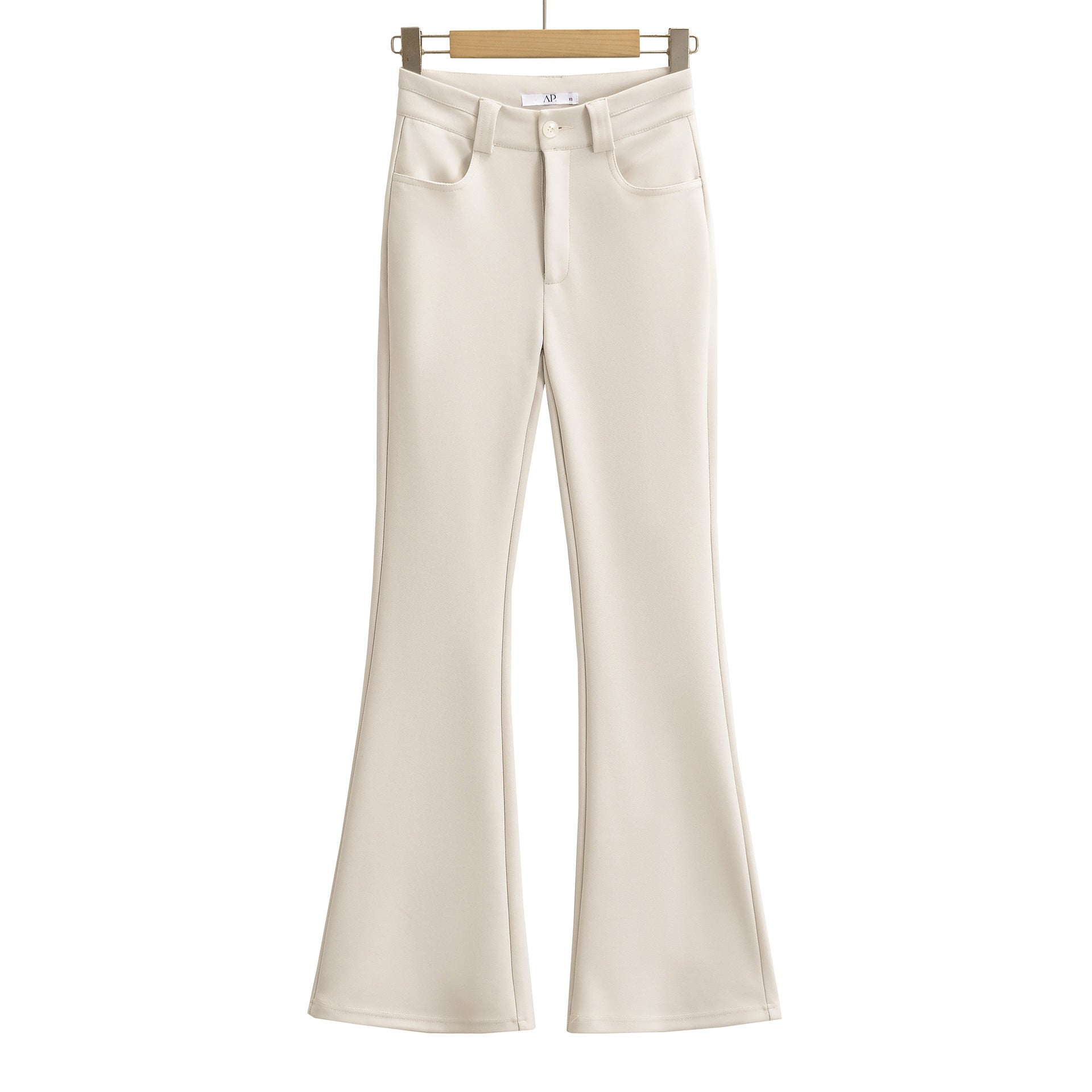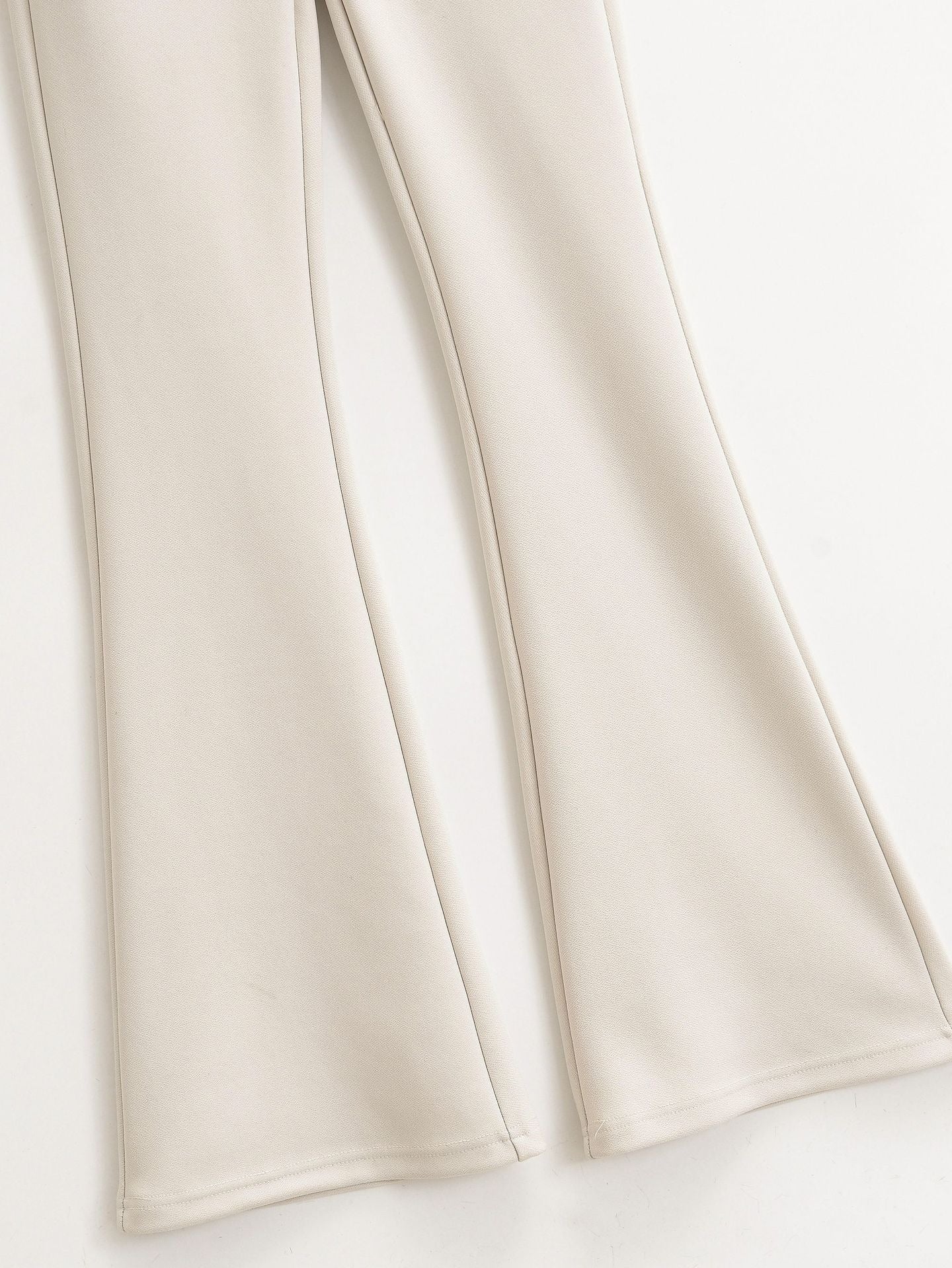 High Elastic Stretch Fabric, Micro Flare Leg Design, Mid Waist Fit, Full Length Cut, Smooth Polyester Blend Finish, Casual Everyday Pants, Easy Styling Essential
