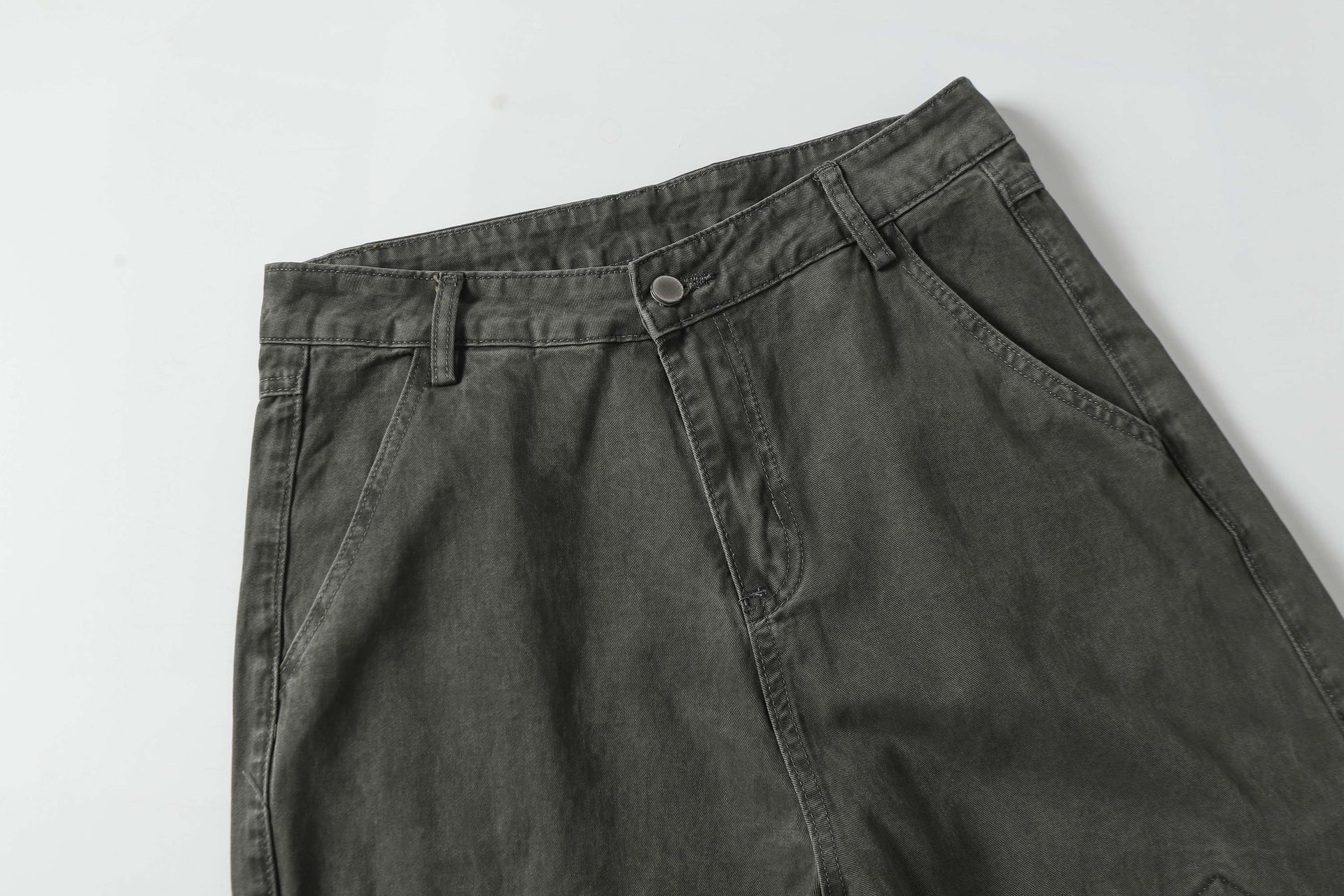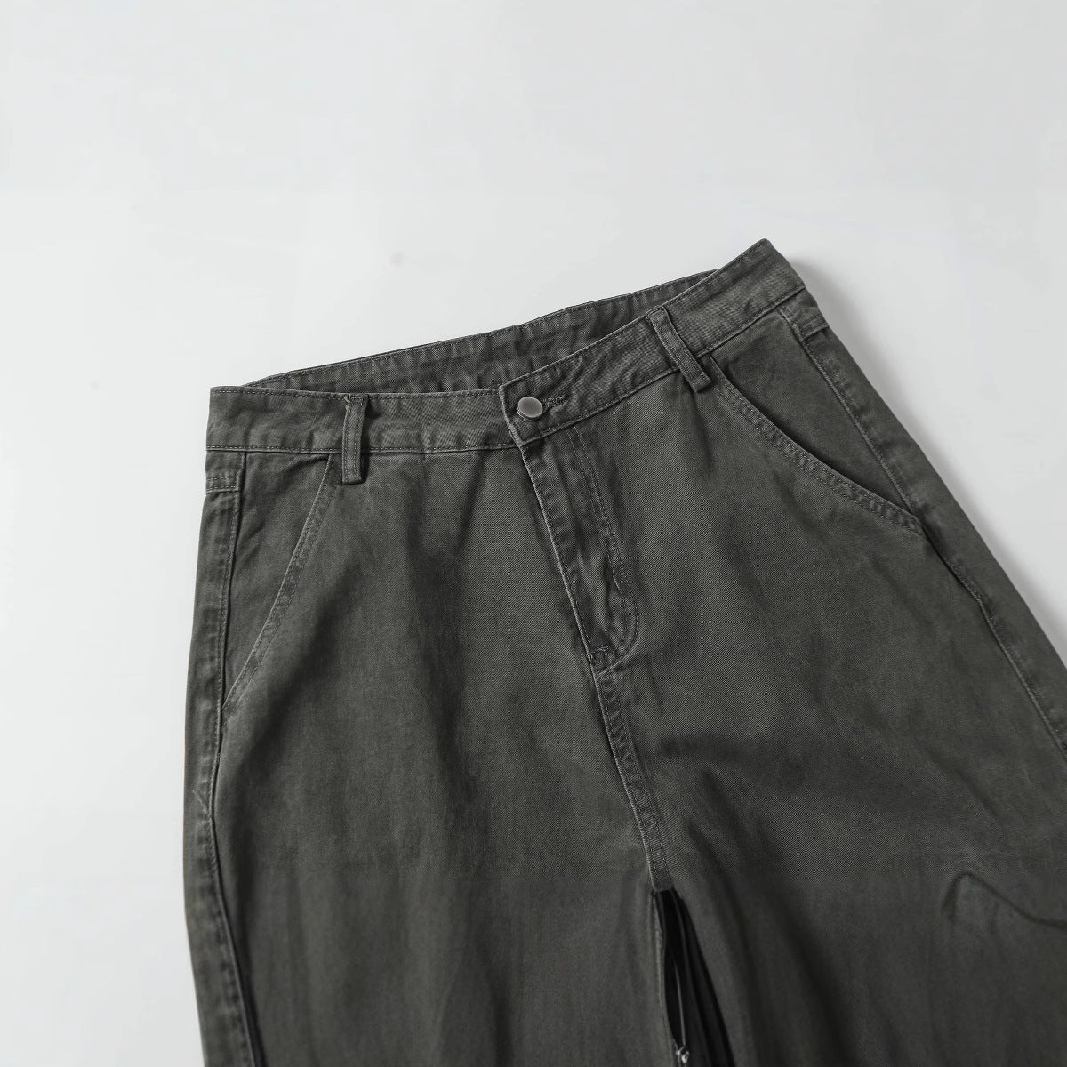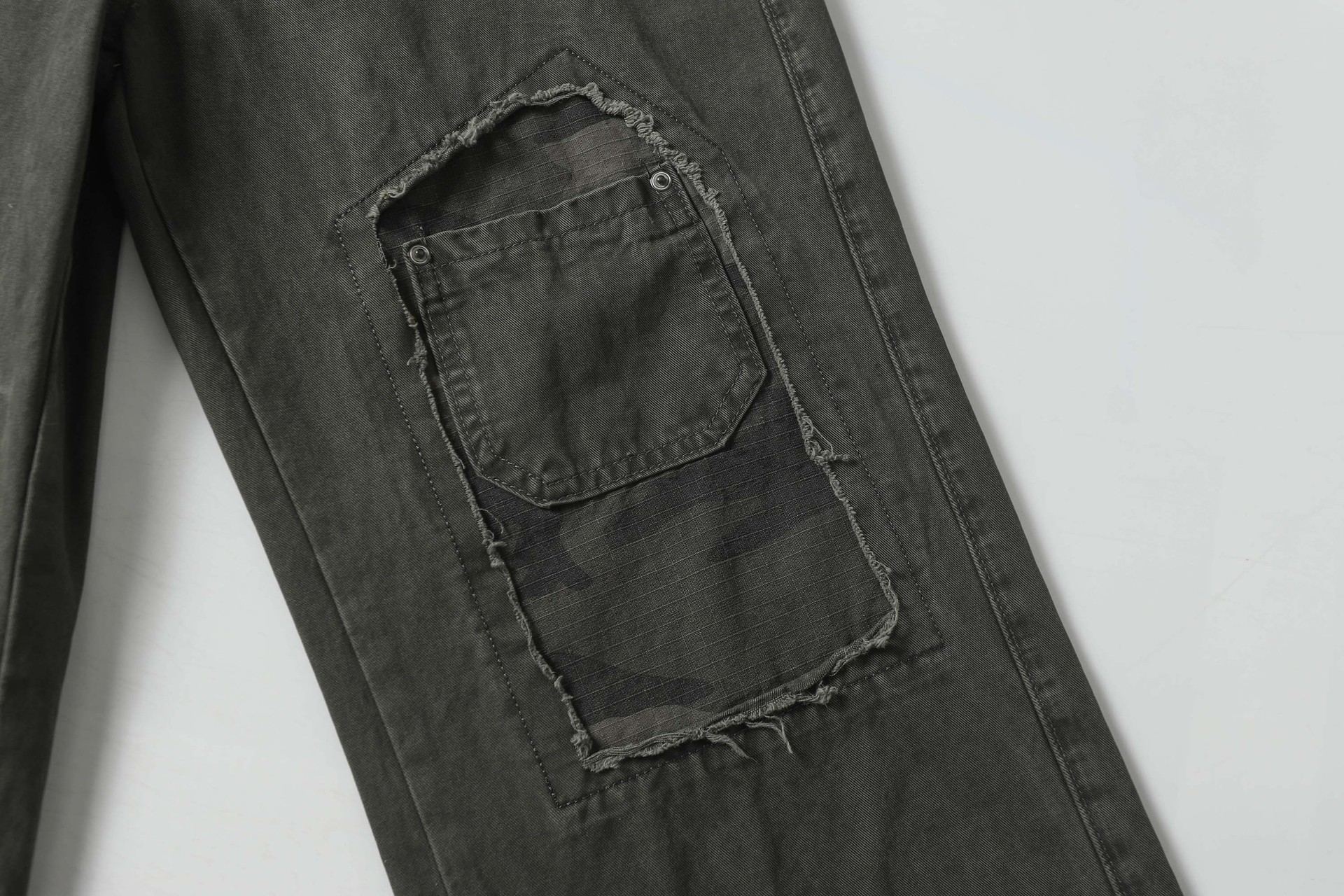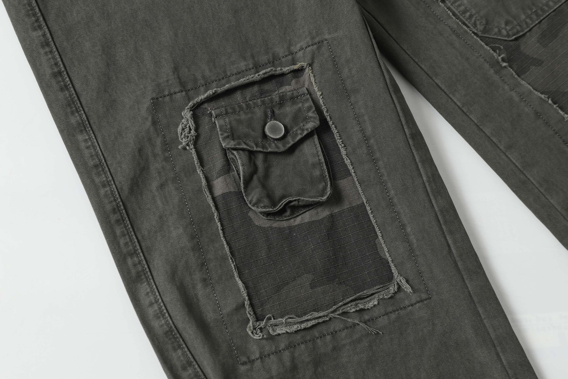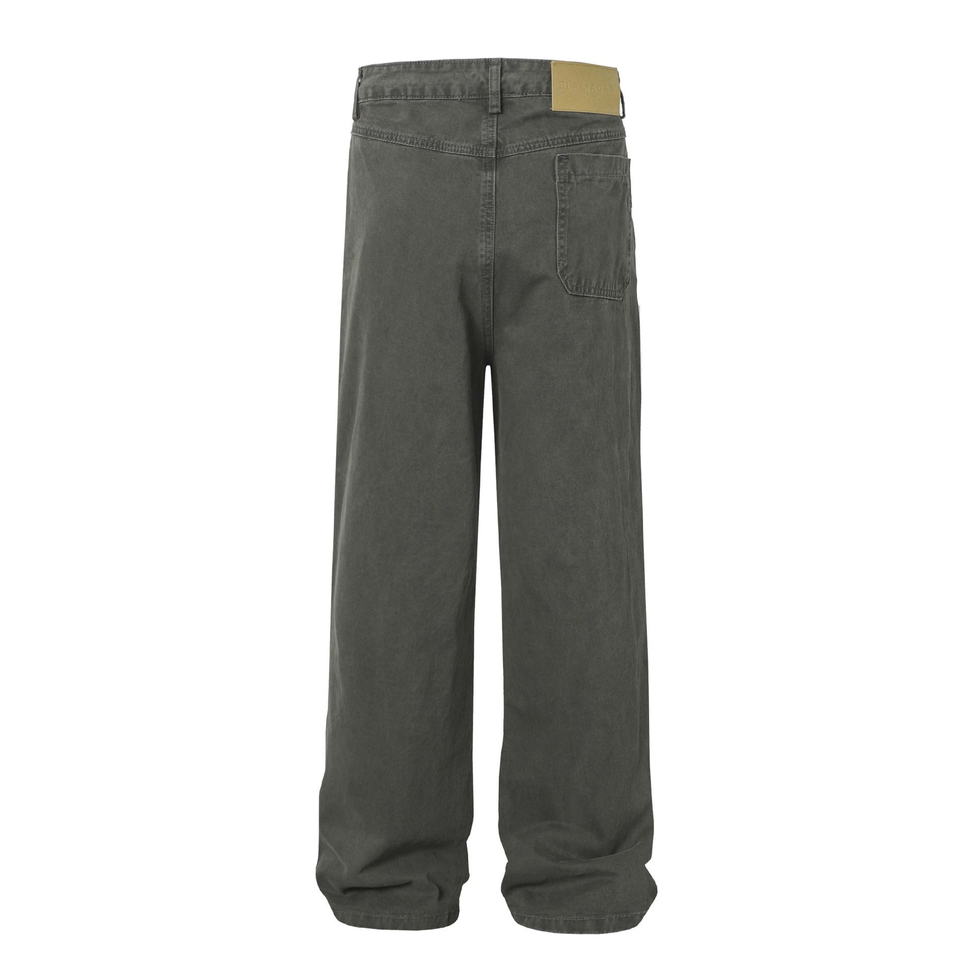 High Street Washed Distressed Patch Pocket Decorated Denim Pants Unisex Loose Long Trousers