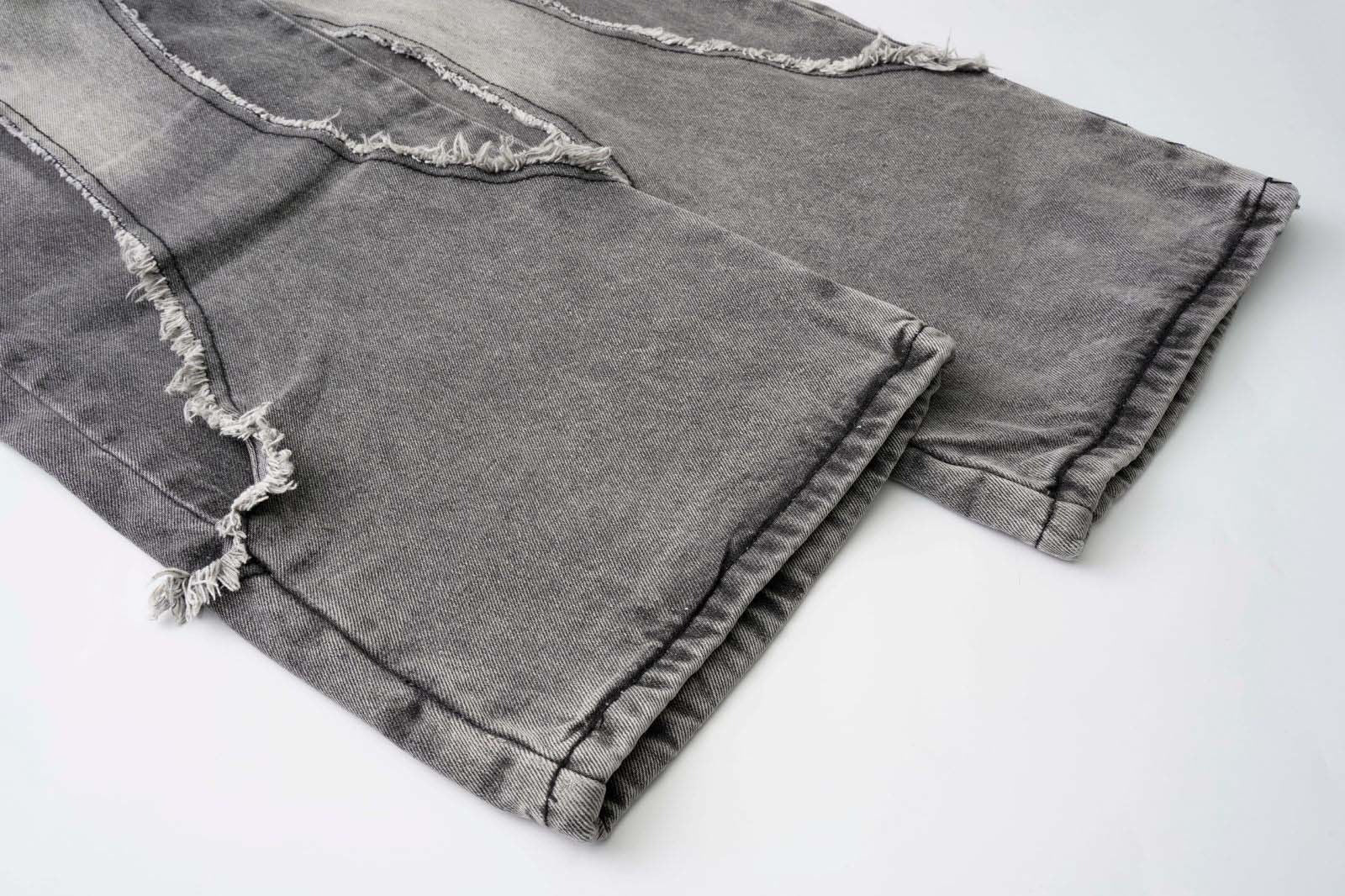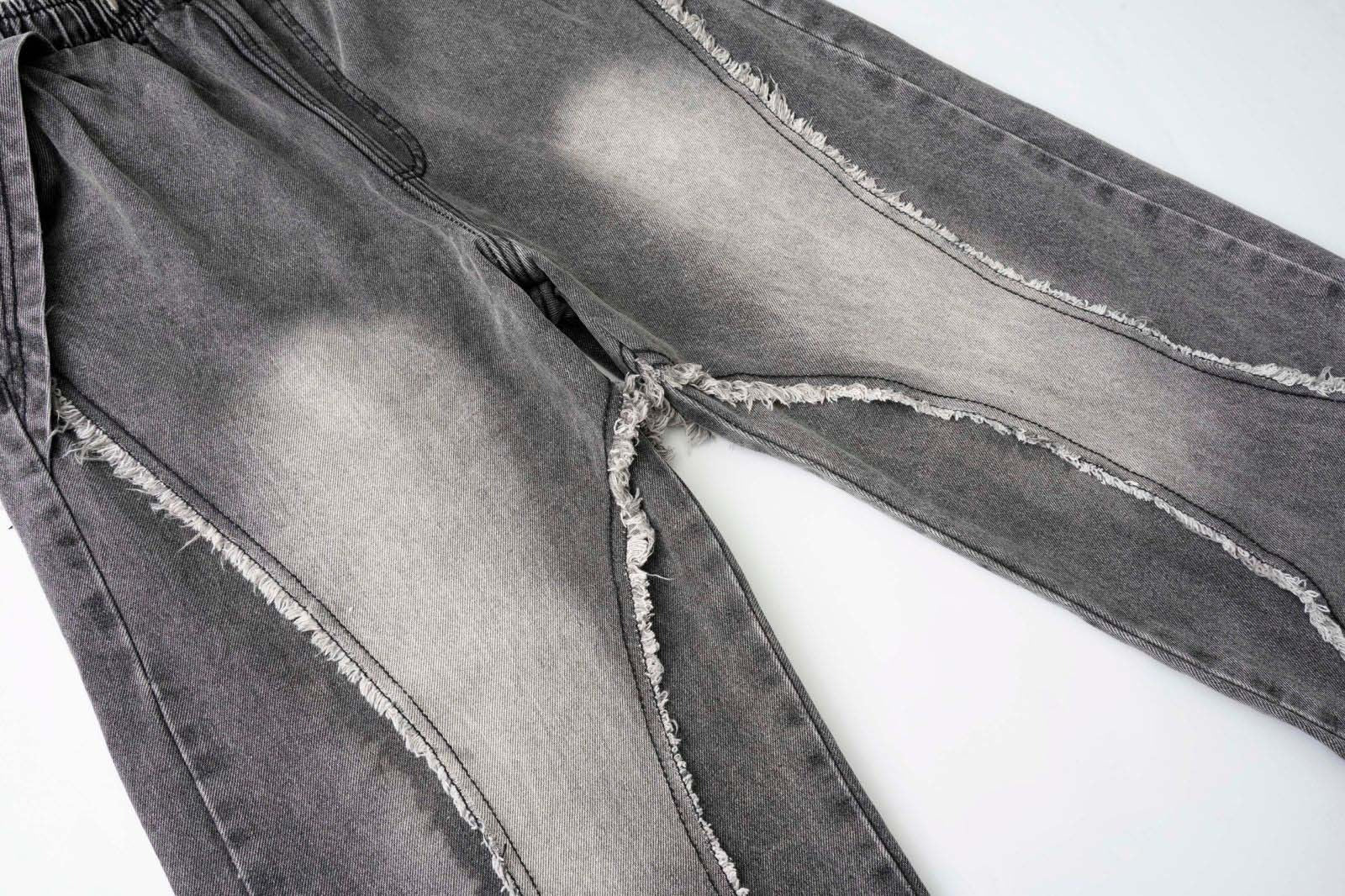 Retro Washed Distressed Patchwork Whisker Denim Pants Level up your high-street wardrobe with these Grozavu retro washed distressed patchwork denim...